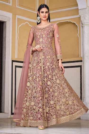 Peach Color Net Fabric Classic Anarkali Suit For Function