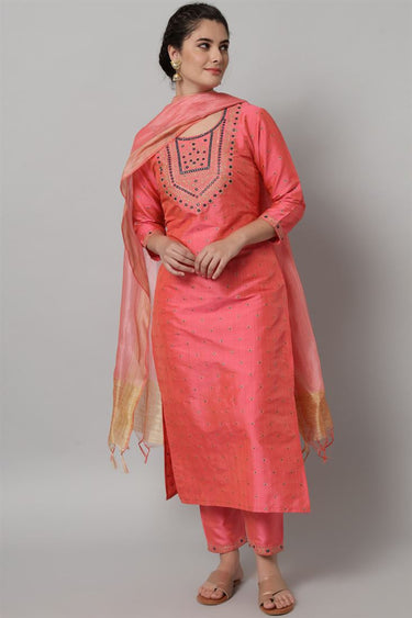 Peach Color Rayon Fabric Charismatic Top Bottom Dupatta Set