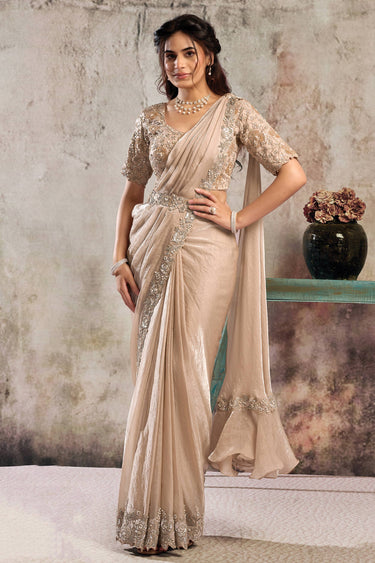 Peach Function Wear Satin Embroidered Border Work Readymade Saree