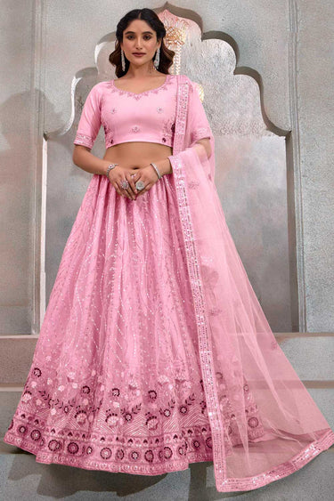 Phenomenal Function Style Pink Color Net Fabric Lehenga