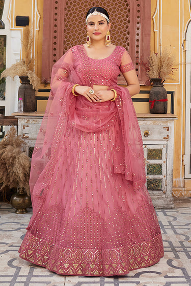 Phenomenal Sequins Work Pink Color Net Fabric Lehenga