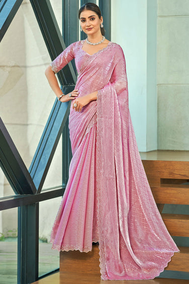 Pink Art Silk Simple Plain Saree