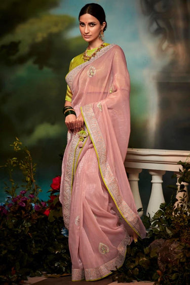 Pink Color Art Silk Fabric Superior Fancy Work Saree