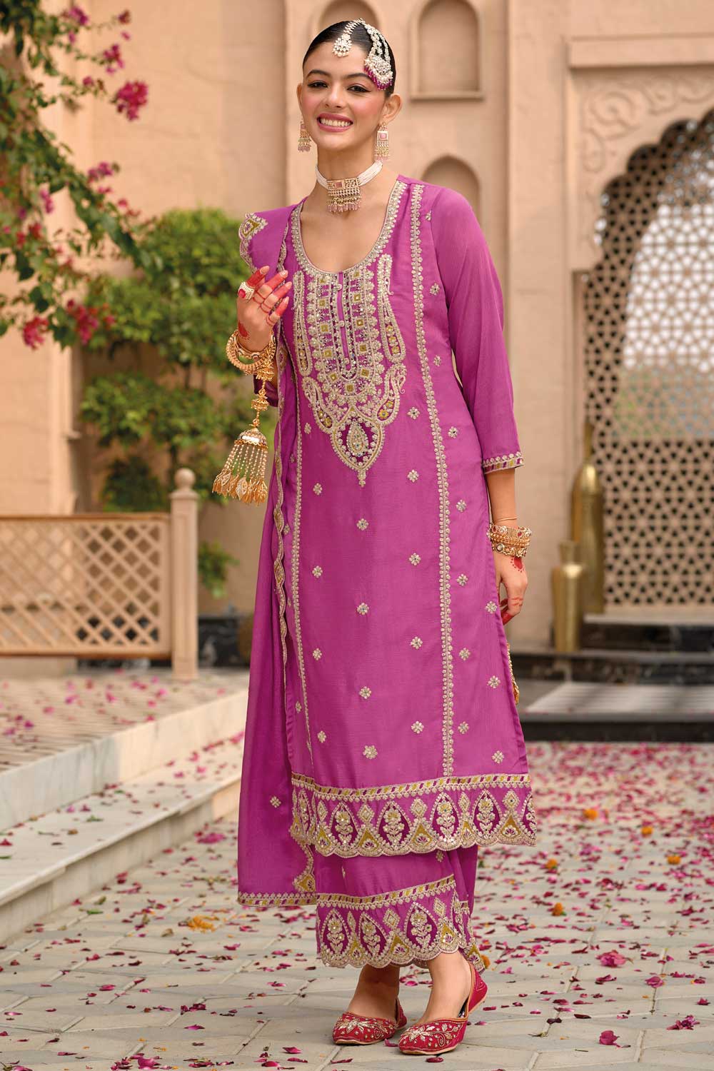 Pink Color Chinon Fabric Trendy Readymade Palazzo Suit