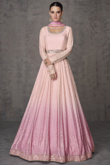 Pink Color Embroidered Readymade Anarkali Style Long Gown With Dupatta