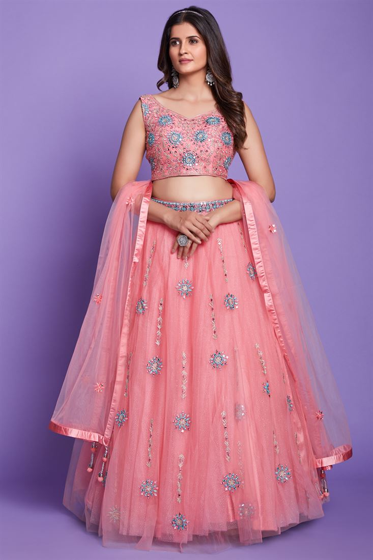 Experience the allure of our breathtaking ensemble that combines traditional craftsmanship with contemporary design. Crafted from soft silk fabric, this lehenga choli set offers a luxurious and comfortable fit, making you look and feel like a diva.The highlight of this attire lies in the exquisite thread embroidery and mirror work. Skilled artisans have intricately adorned the lehenga choli with thread-based patterns, adding a touch of elegance and opulence. The mesmerizing mirror work further enhances its beauty, creating a radiant and captivating ensemble.The soft silk fabric drapes gracefully, allowing you to move with utmost ease and grace. The matching soft net dupatta completes the look, exuding sophistication and charm.Perfect for weddings, festive occasions, and grand celebrations, the Soft Silk Thread Mirror Work Designer Readymade Lehenga Choli is a timeless masterpiece that blends tradition with modern aesthetics.