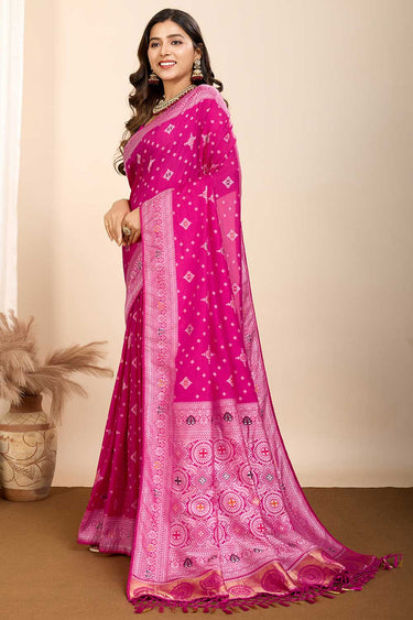 Pink Color Exquisite Woven Meenakari Art Silk Saree