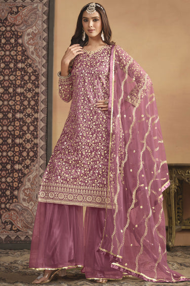 Pink Color Fantastic Net Fabric Palazzo Suit In Festive Wear