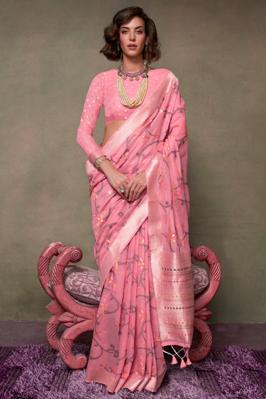 Pink Color Gorgeous Festive Wear Cotton Saree With Printed Work