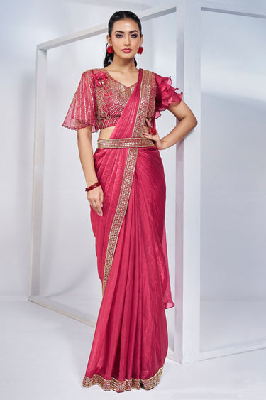Pink Color Satin Silk Fabric Beatific Ready To Wear Saree