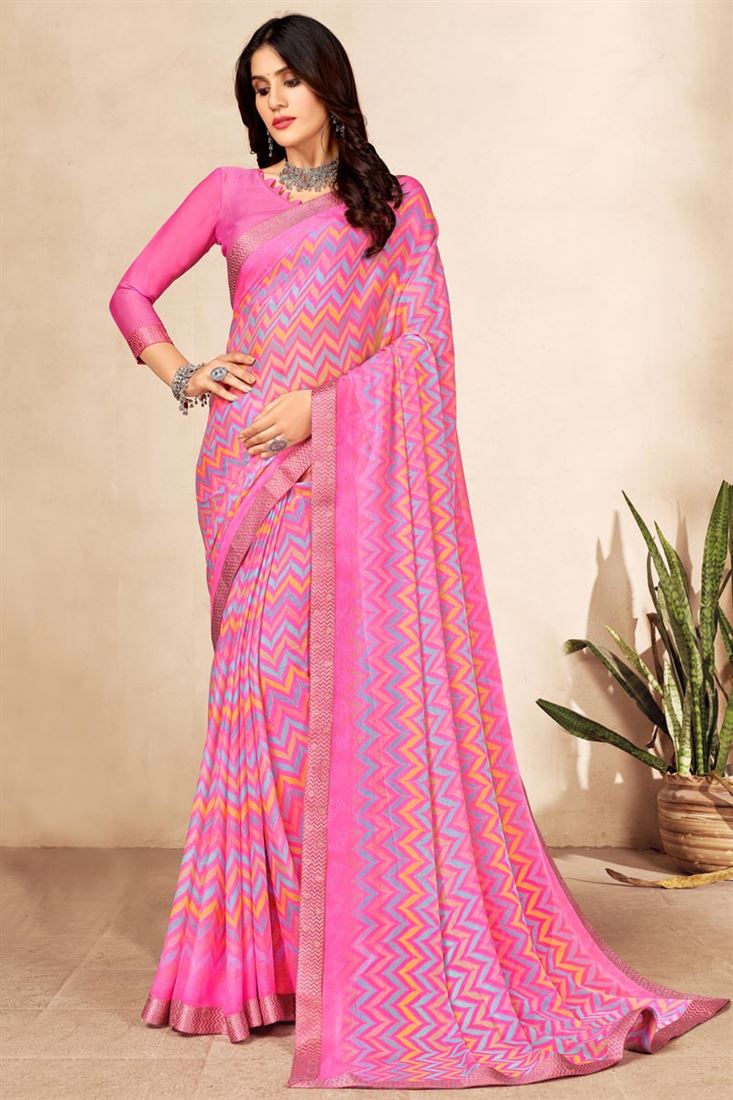 Pink Color Stunning Casual Look Saree In Chiffon Fabric