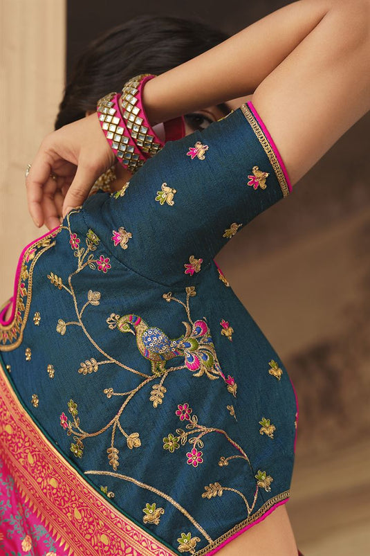 Pink Color Weaving Work Traditional Wear Saree In Art Silk Fabric