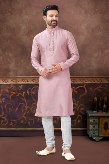 Pink Long Kurta Pyjama For Men