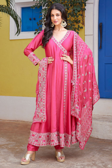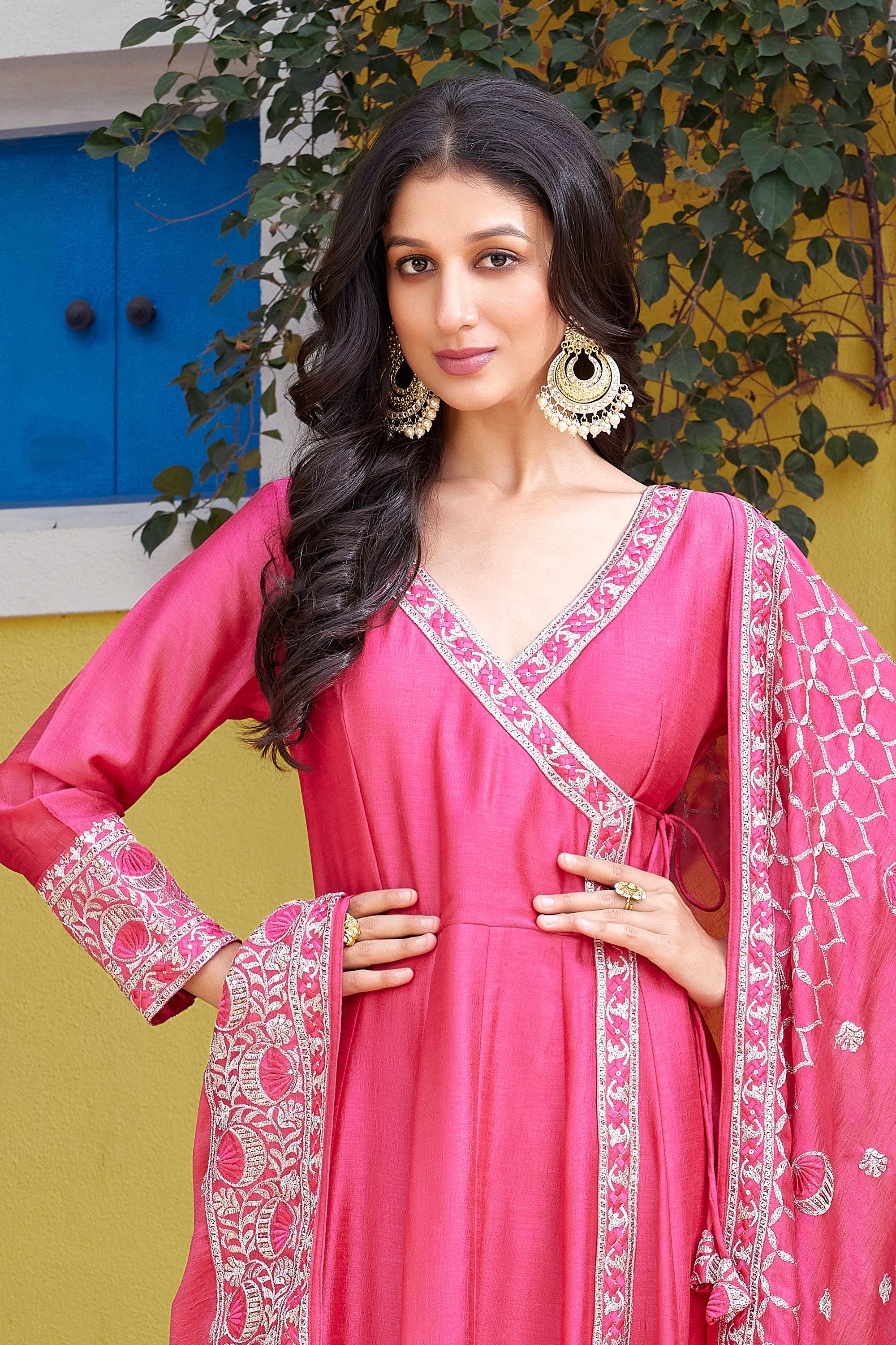 Step into elegance with the Pink Silk Pastel Embroidered Neckline Anarkali Salwar Kameez. This traditional attire boasts a lush silk fabric in a beautiful pastel hue, designed to make you stand out on any special occasion. The intricately embroidered neckline adds a touch of sophistication and timeless beauty, ensuring that all eyes are on you. Comfortable and stylish, this Anarkali suit is perfect for weddings, festivals, and other celebratory events. Available in various sizes, it provides a flattering fit for all body types. Pair it with delicate jewelry and traditional footwear to complete your graceful look.