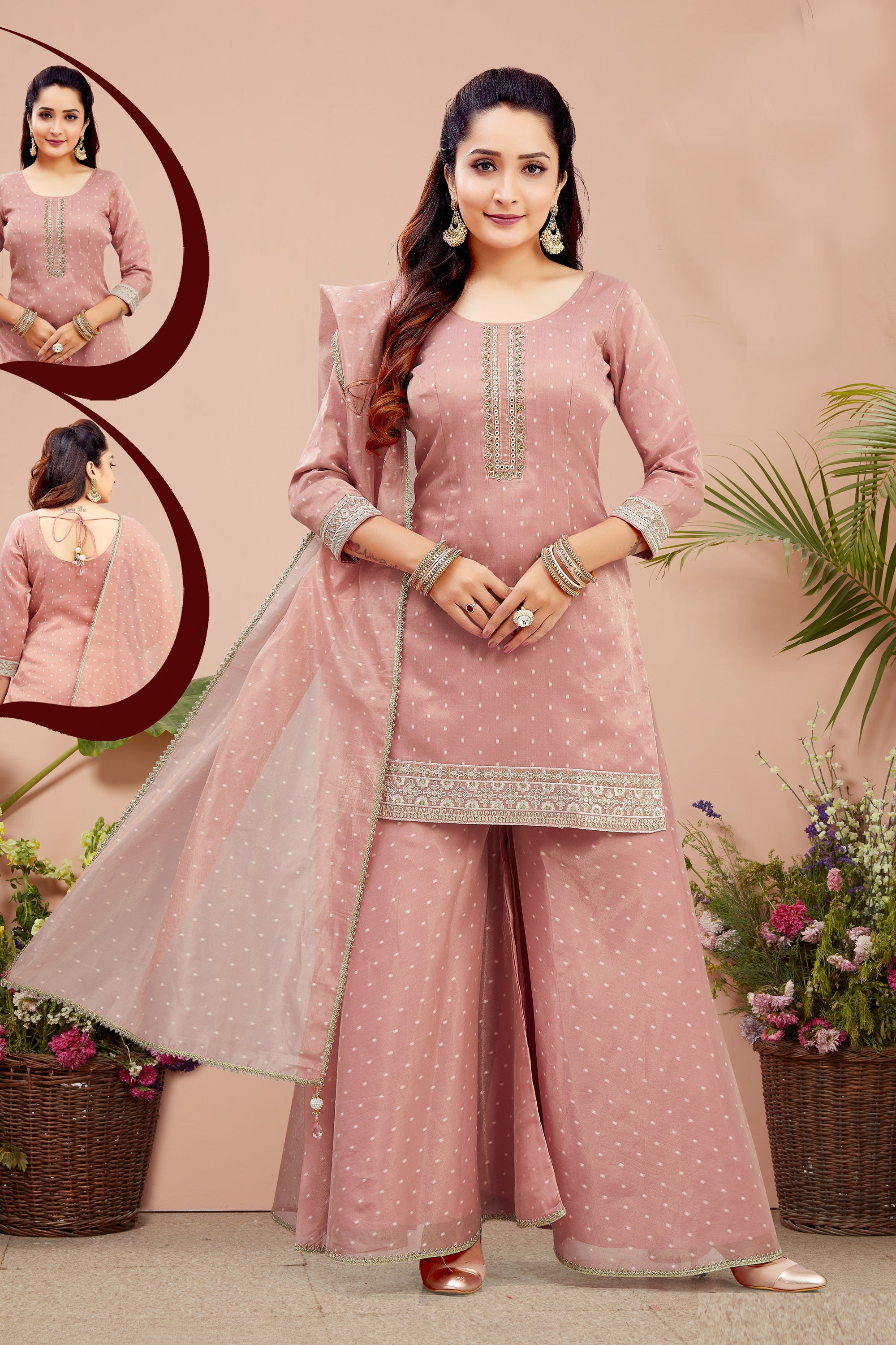Celebrate in style with the Reach Color Silk Readymade Palazzo Suit. Crafted from high-quality silk, this outfit ensures both elegance and comfort. The kurta features stunning embroidery that adds a touch of sophistication, while the palazzo pants offer ease of movement. This suit is perfect for festive occasions, weddings, or family functions. It’s ready-made, so you can simply put it on and shine. With multiple size and color options, this ensemble can easily fit into your wardrobe. Enjoy the compliments as you grace any event with this beautiful suit.