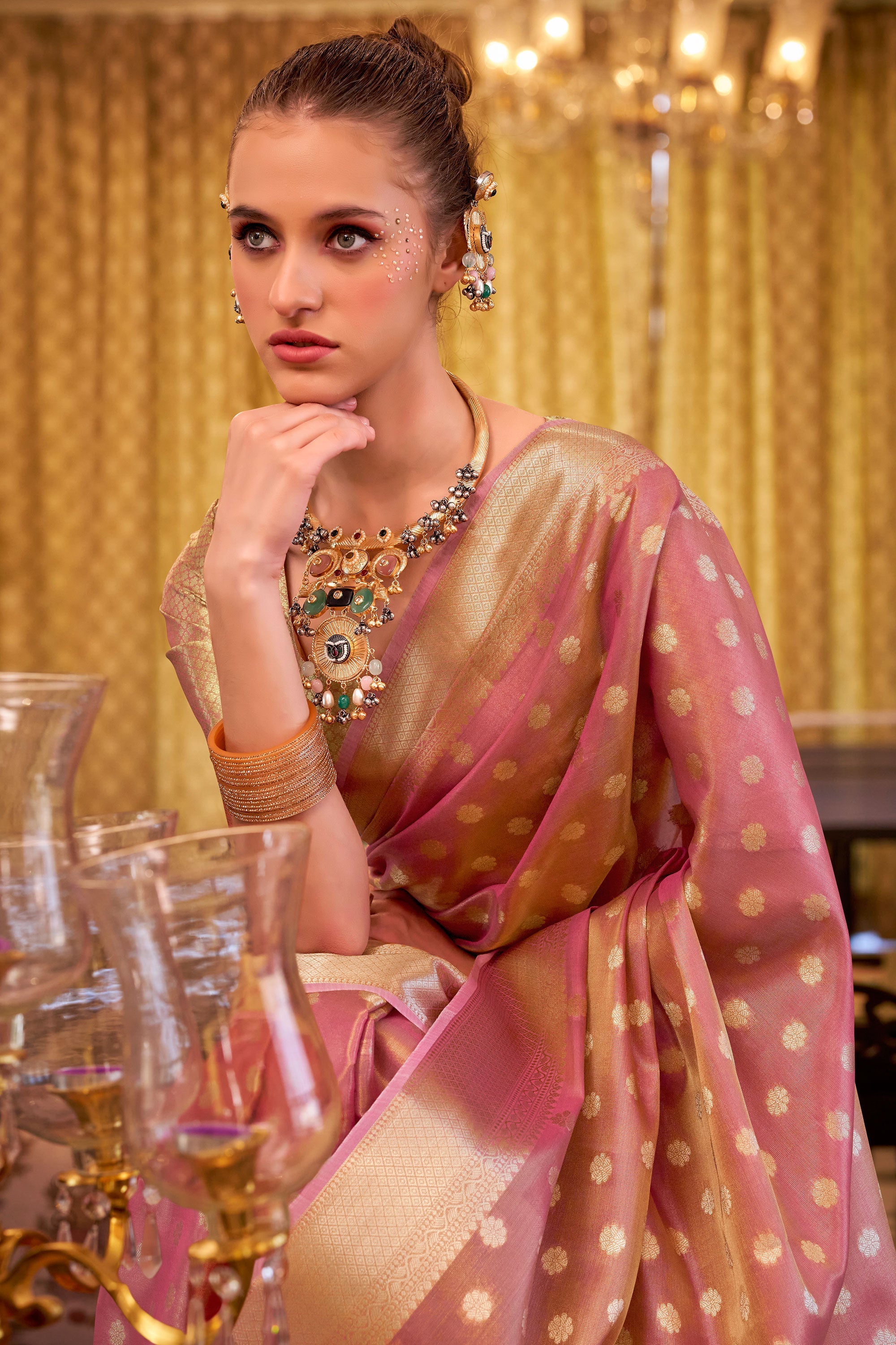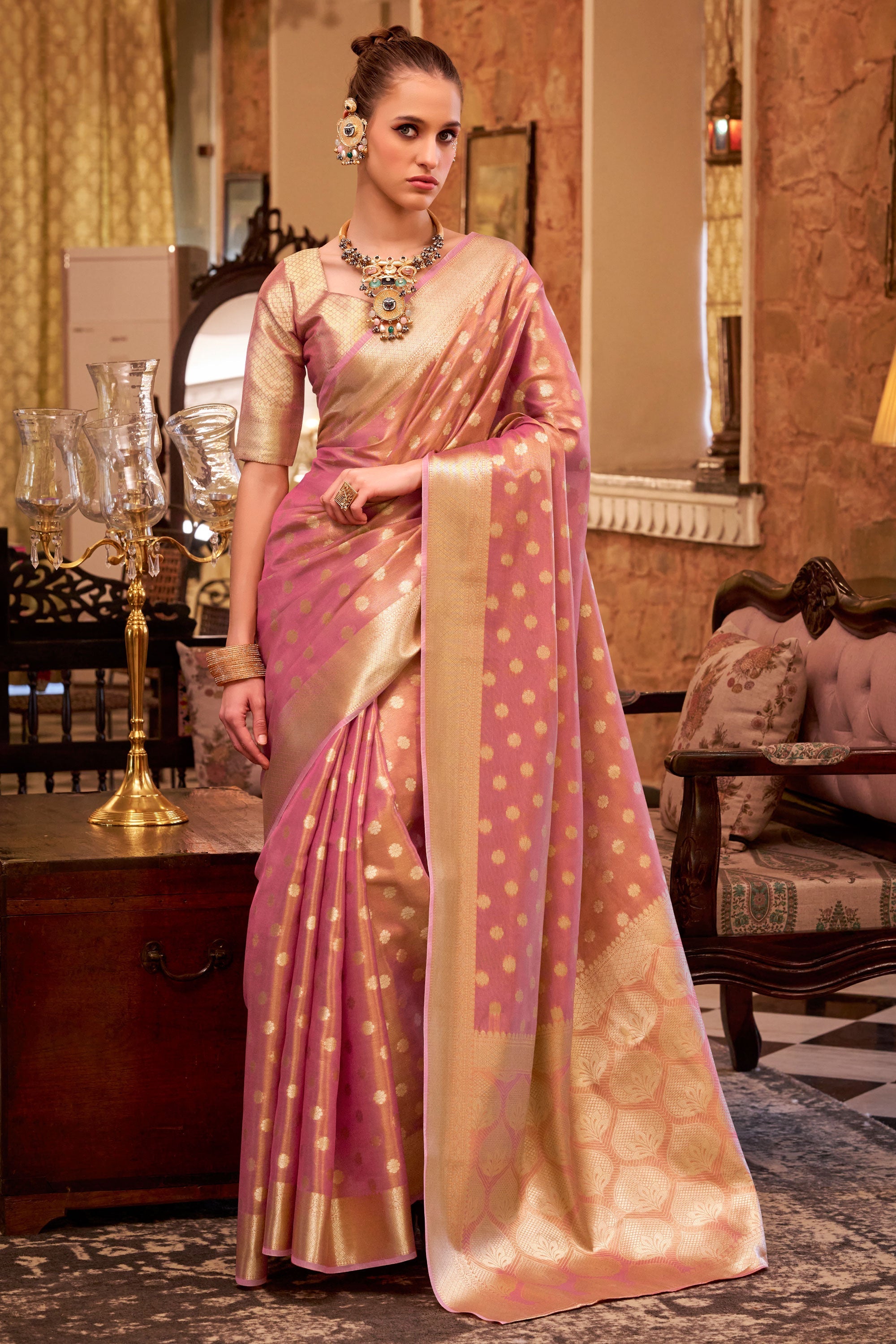 Pink Tissue Silk Handloom Zari Weaving Sangeet Wear Saree