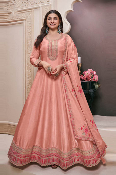 Prachi Desai Art Silk Peach Long Flair Anarkali Salwar Kameez
