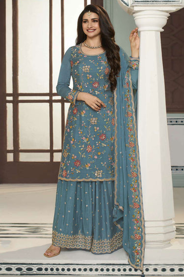 Prachi Desai Glamorous Viscose Fabric Cyan Color Palazzo Suit