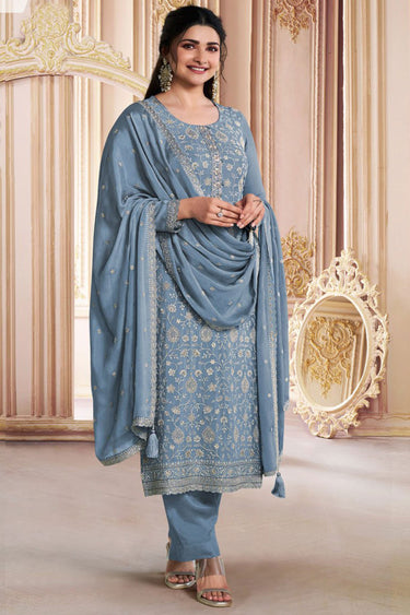 Prachi Desai Glorious Grey Color Chinon Silk Salwar Suit