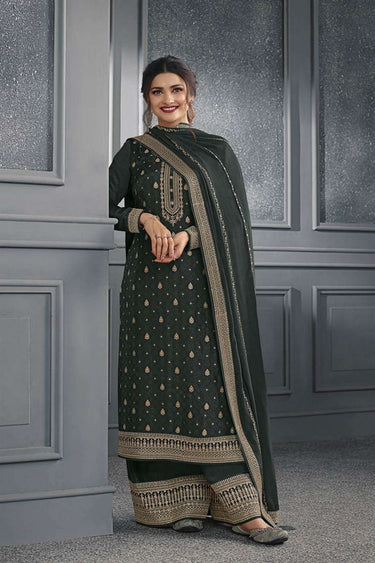 Prachi Desai Jacquard Fabric Brilliant Palazzo Suit In Olive Color