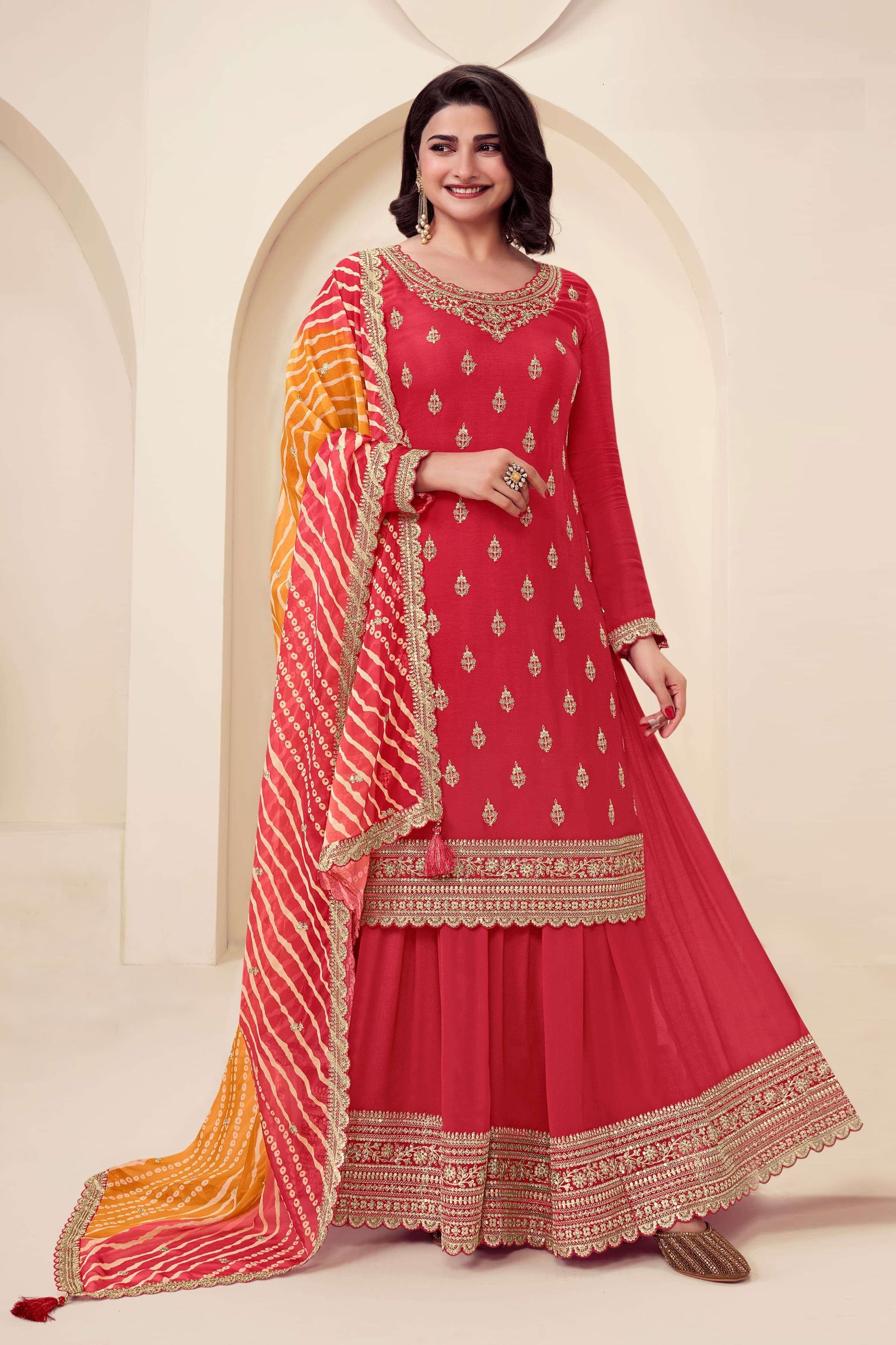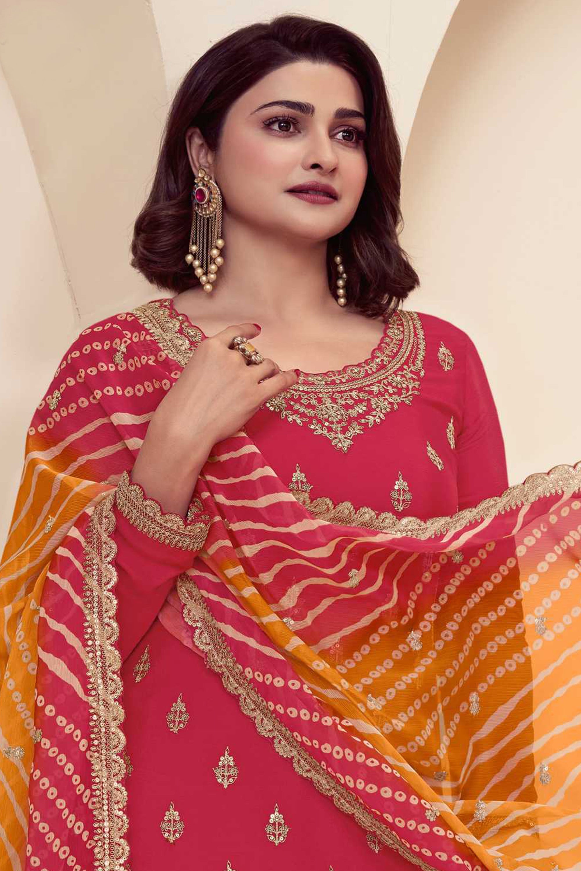 Prachi Desai Pink Color Function Wear Chinon Palazzo Salwar Kameez