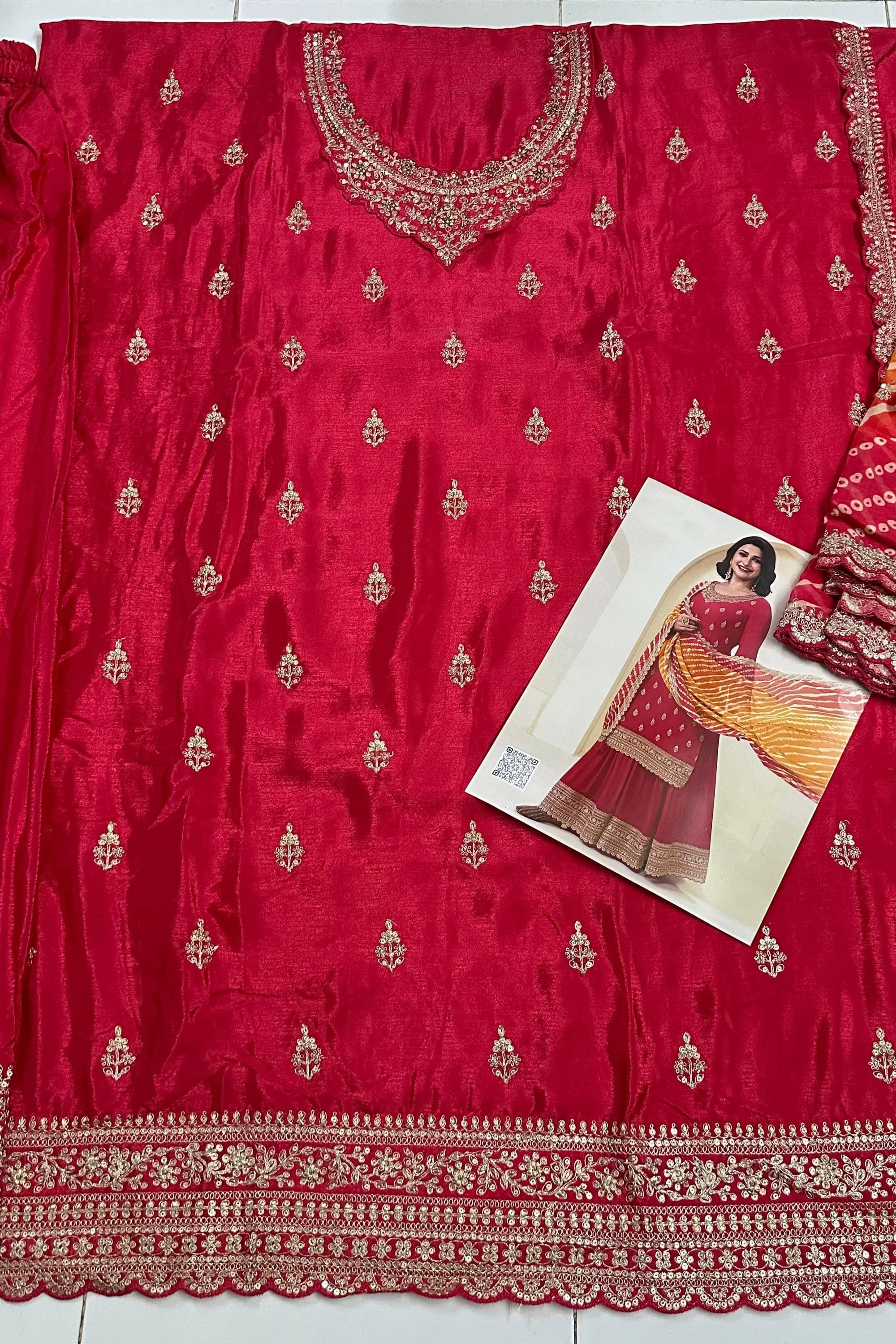 Elevate your style with the Reach Color Function Wear Chinon Palazzo Salwar Kameez. This stunning outfit is crafted from high-quality Chinon fabric, ensuring comfort and a luxurious feel. The palazzo pants offer a modern twist on a classic look, while the elegant kameez features intricate embroidery. Perfect for festive occasions, parties, or casual outings, this ensemble will make you stand out effortlessly. Available in a variety of colors, there's a perfect match for every personality and preference. Easy to care for and maintain, this versatile set will be a favorite in your wardrobe. Pair it with your favorite accessories to complete the look.