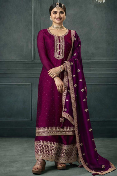 Prachi Desai Radiant Burgundy Color Georgette Palazzo Suit