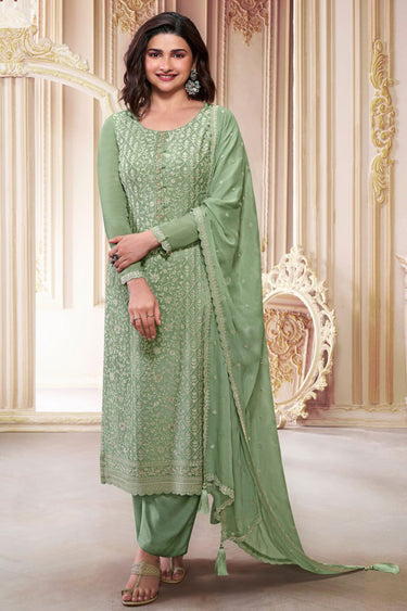 Prachi Desai Radiant Green Color Chinon Silk Salwar Suit