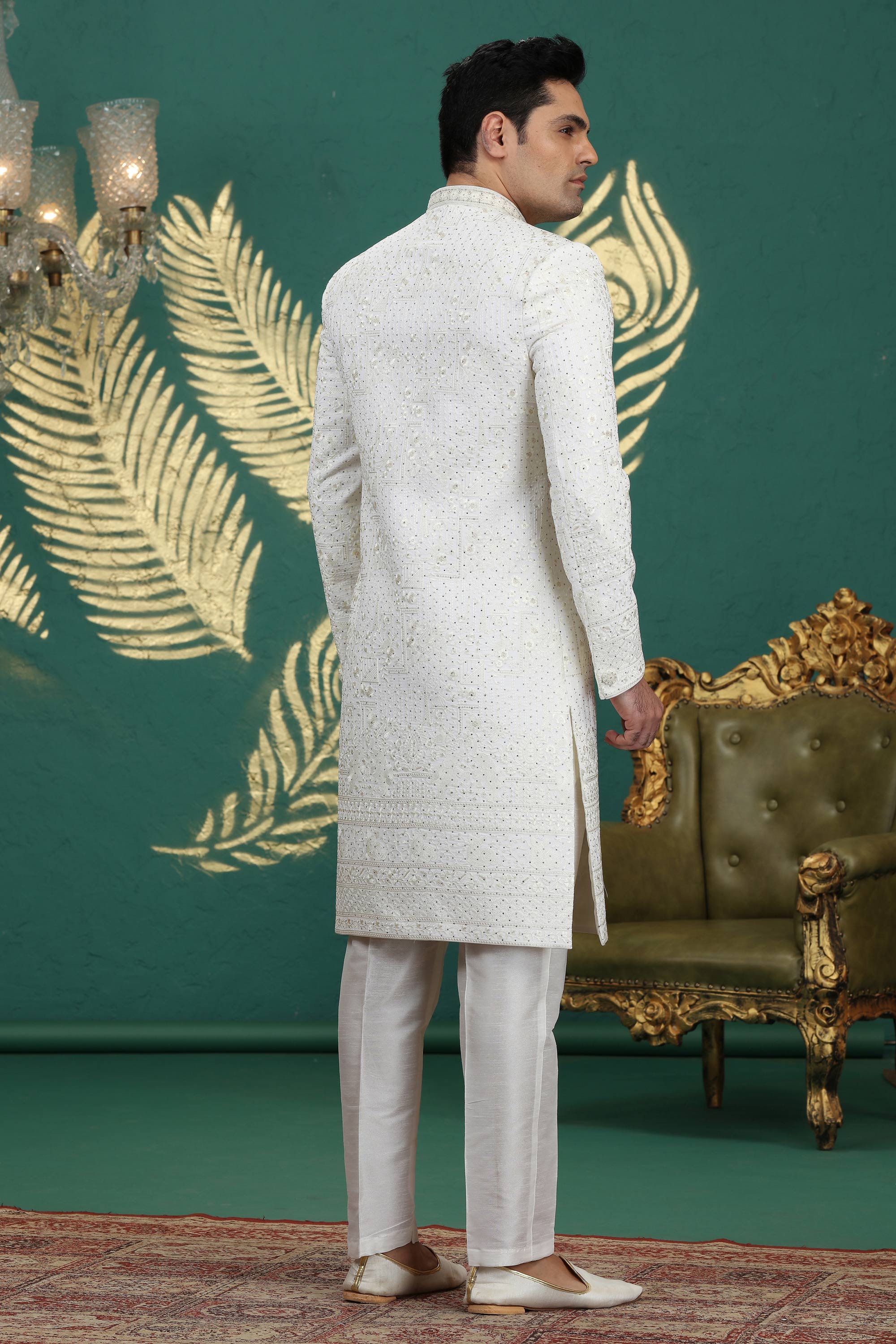 Pretty Art Silk Wedding Wear Readymade Men Sherwani In Cream
