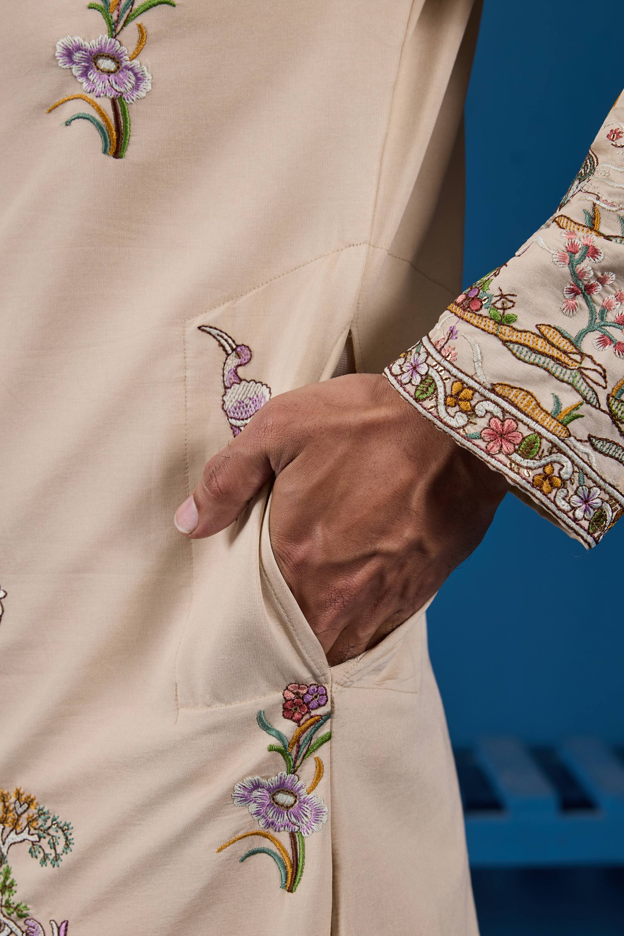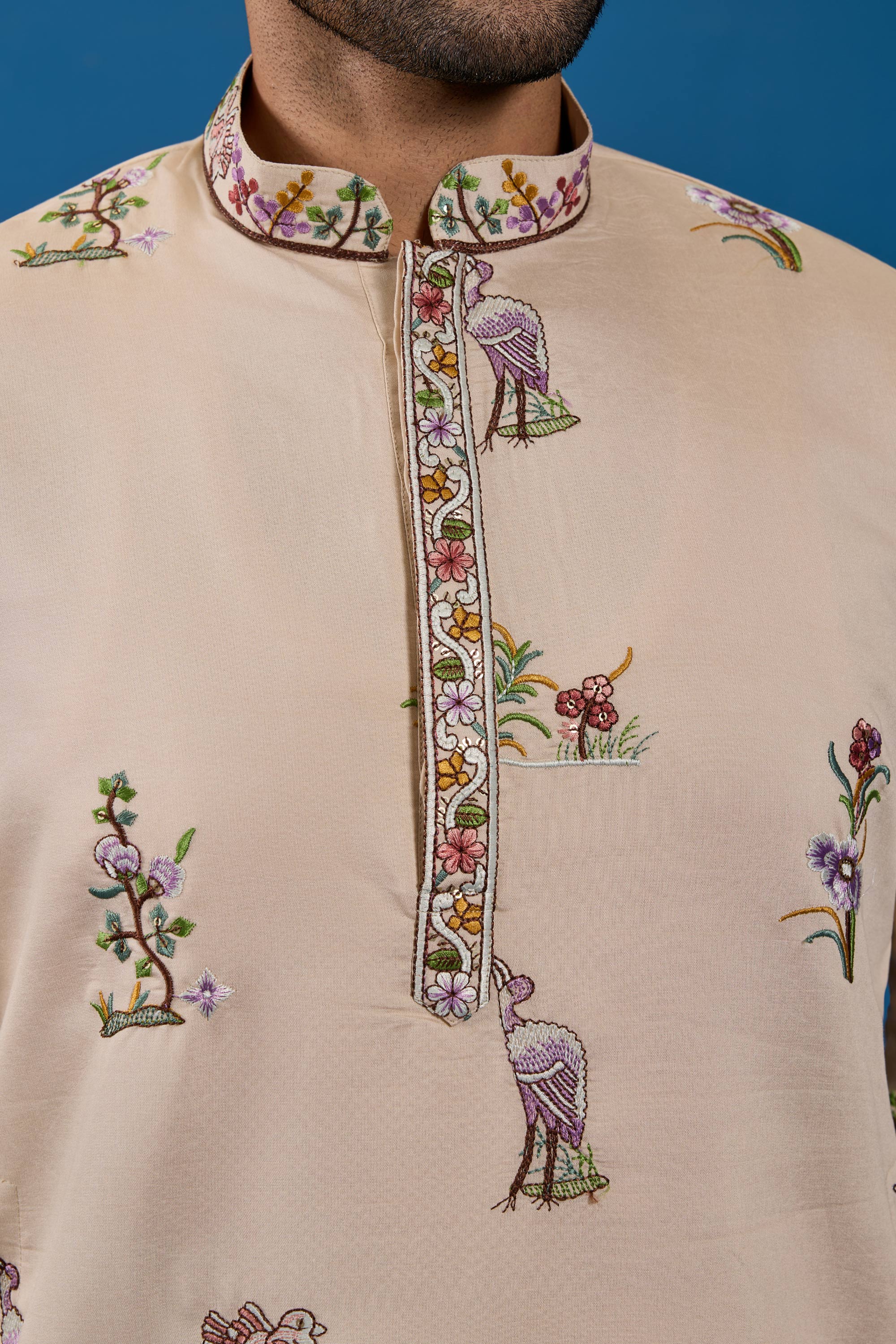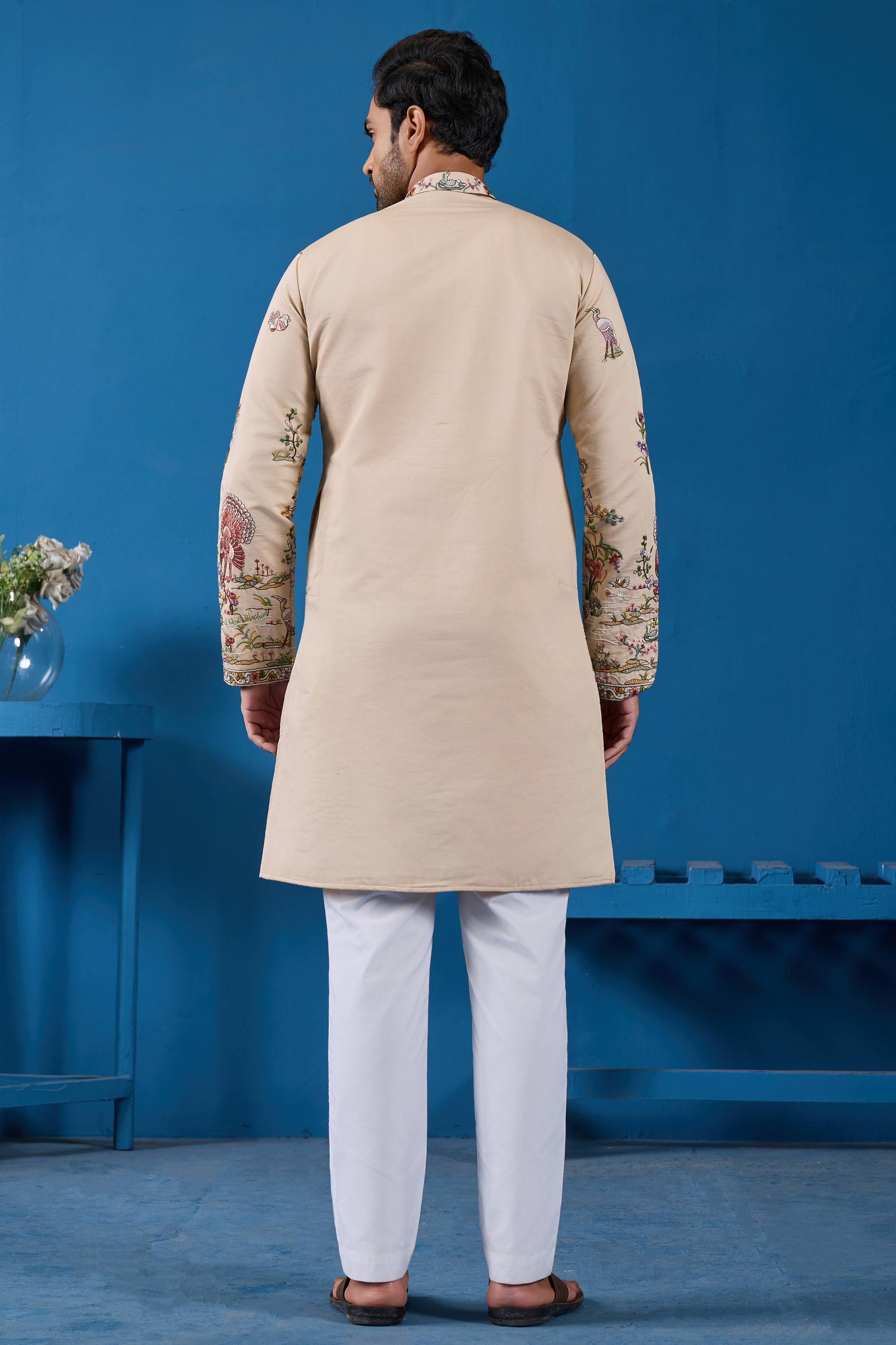 Pretty Viscose Silk Sangeet Wear Readymade Men Kurta In Beige Color