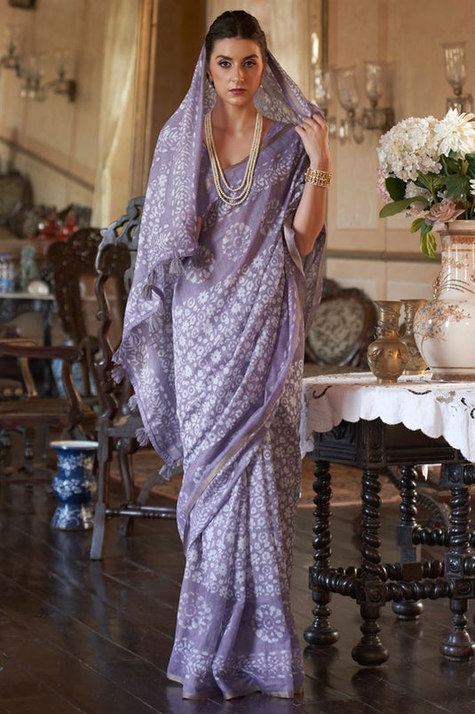 Printed Cotton Classic Saree In Lavender
