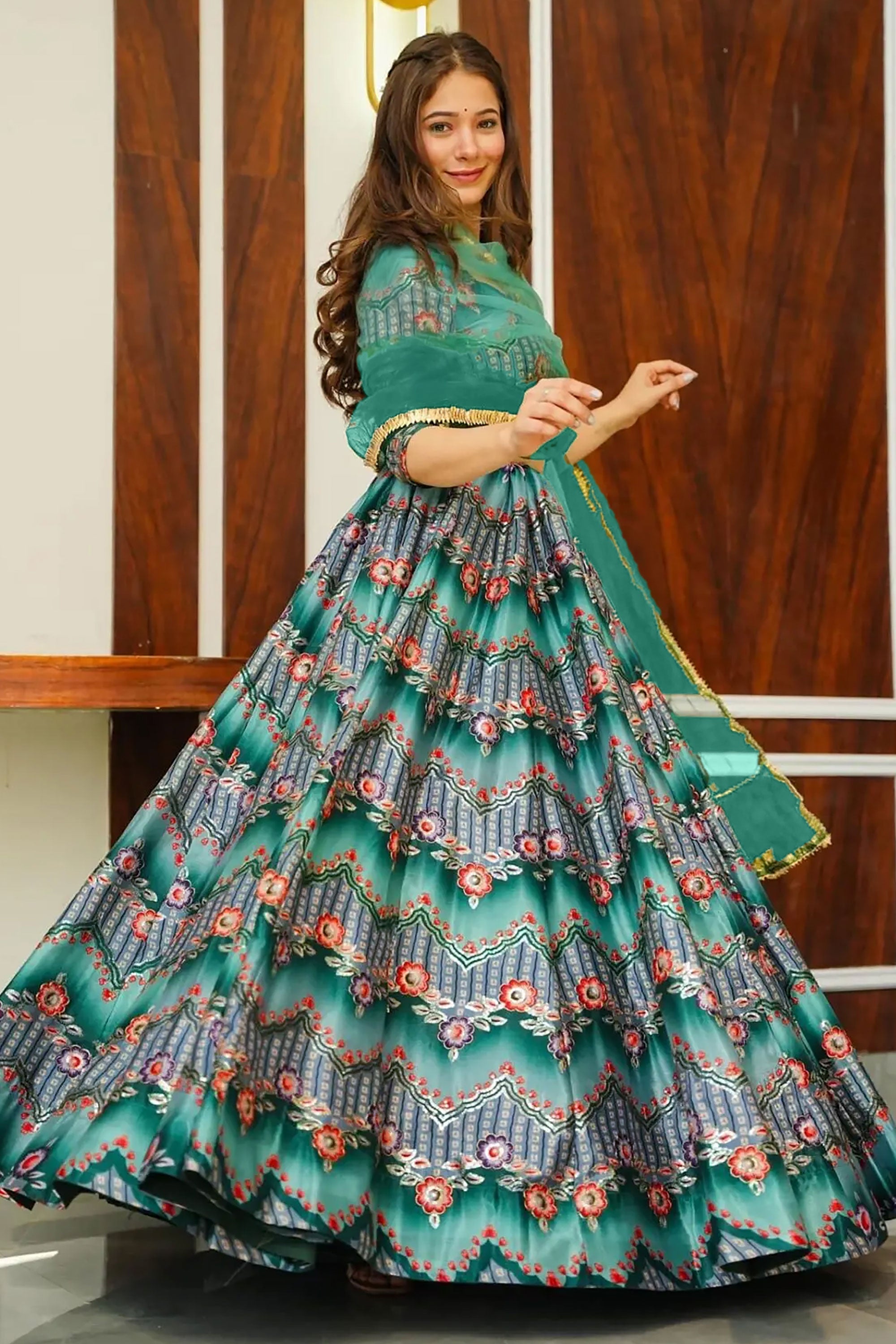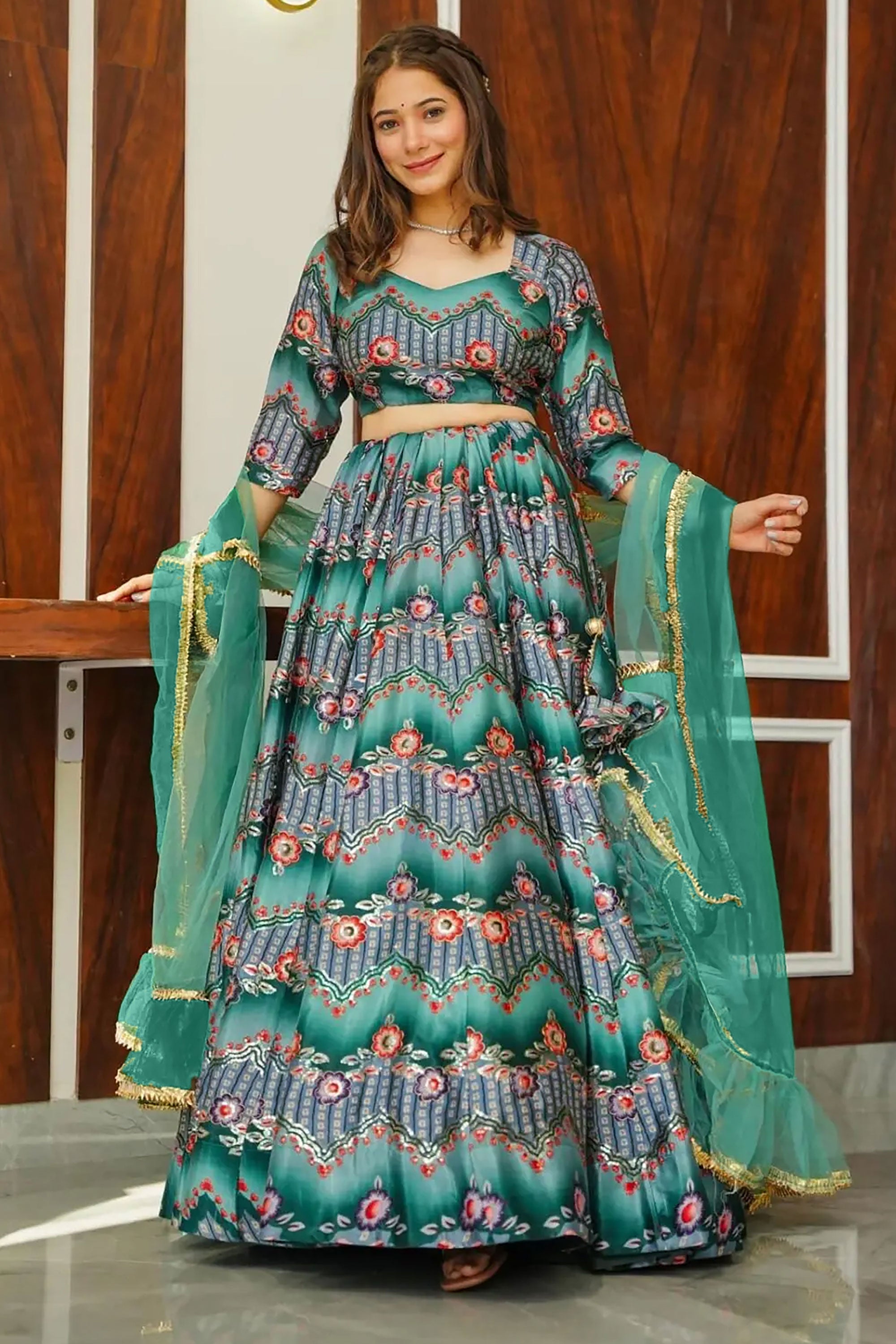 Add a touch of grace to your wardrobe with this stunning Printed Festive Wear Crop Top Lehenga crafted in luxurious art silk fabric. The intricate design and vibrant print make it perfect for weddings, celebrations, or any festive event. Designed to provide comfort without compromising on style, this lehenga comes fully readymade, saving you time and effort. The lightweight yet durable fabric ensures effortless movement, while the eye-catching print creates an unforgettable impression. Whether paired with traditional jewelry or modern accessories, this elegant ensemble will surely make you stand out on any special occasion.