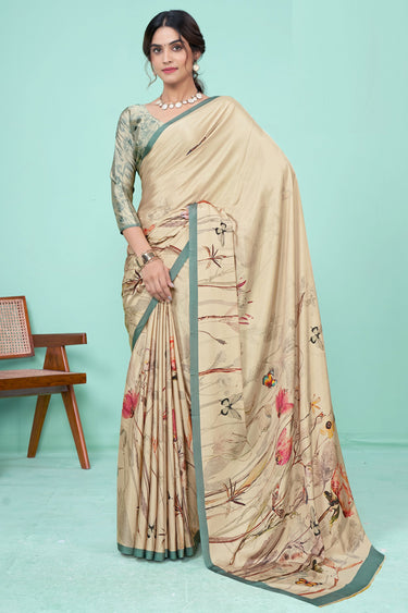 Printed Work Imposing Crepe Fabric Casual Saree In Beige Color