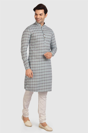 Printed Work Sea Green Color Festival Wear Kurta Pyjama