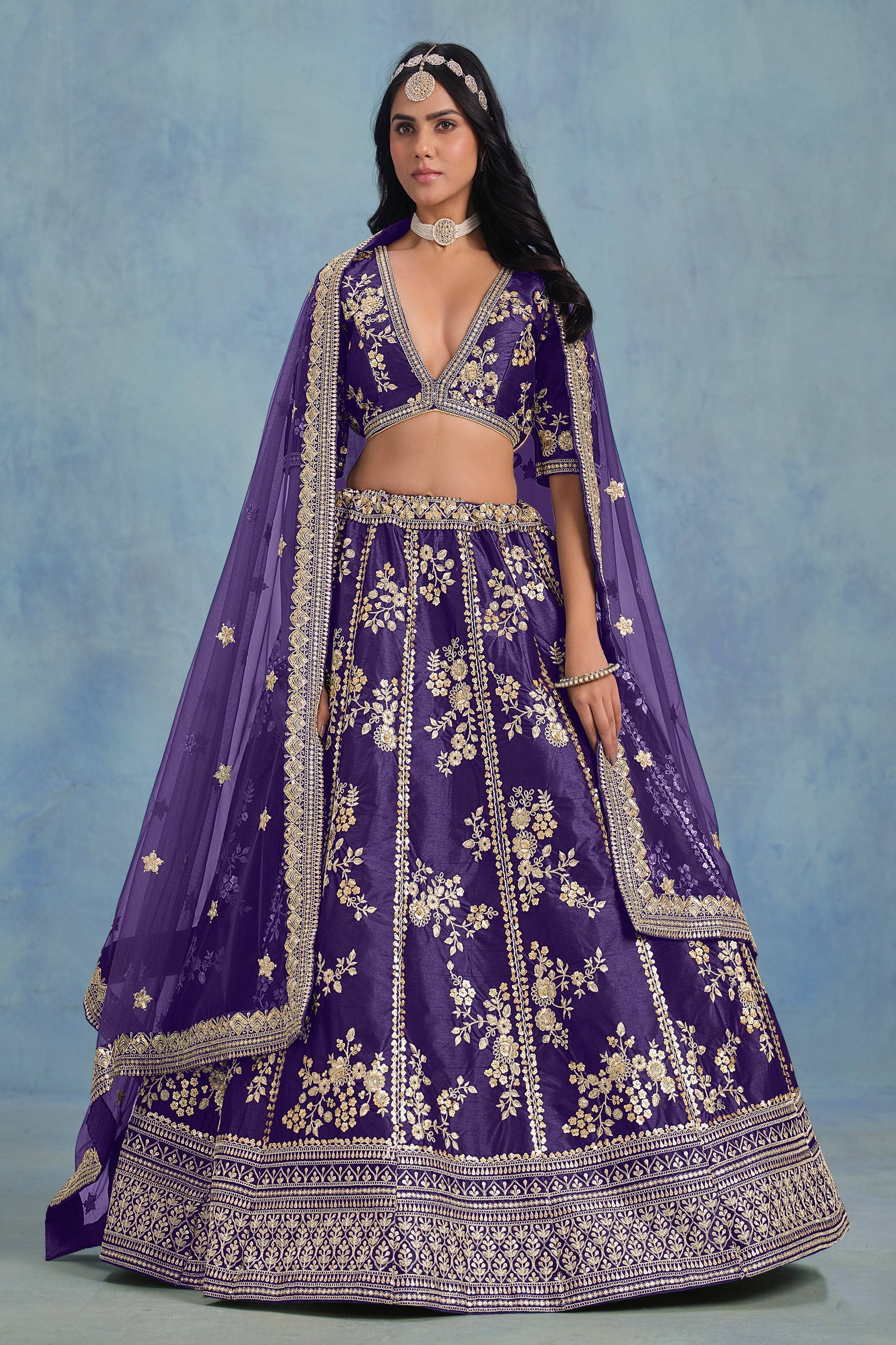 Purple Art Silk Fabric Occasion Wear Embroidered Lehenga Choli
