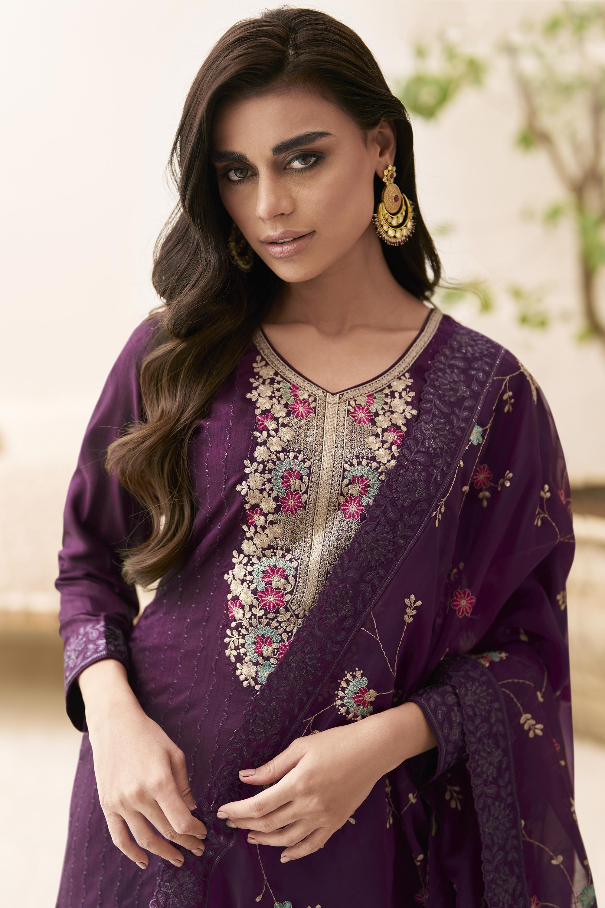 Purple Color Festive Wear Art Silk Fabric Embroidered Palazzo Salwar Kameez
