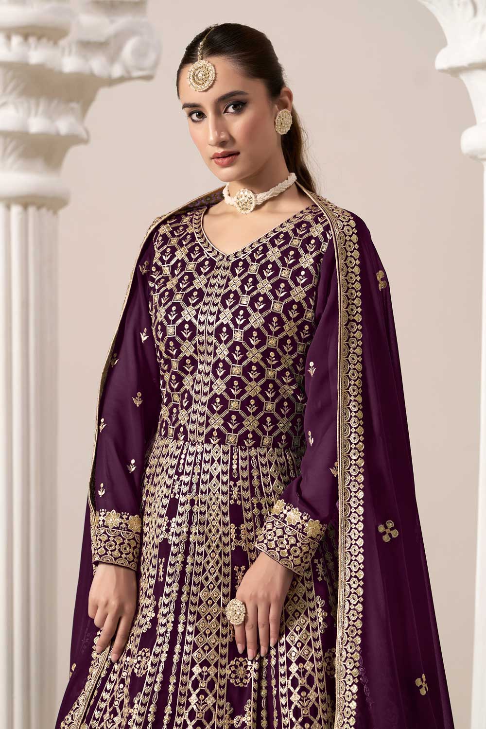 Purple Color Georgette Fabric Function Style Classic Anarkali Suit