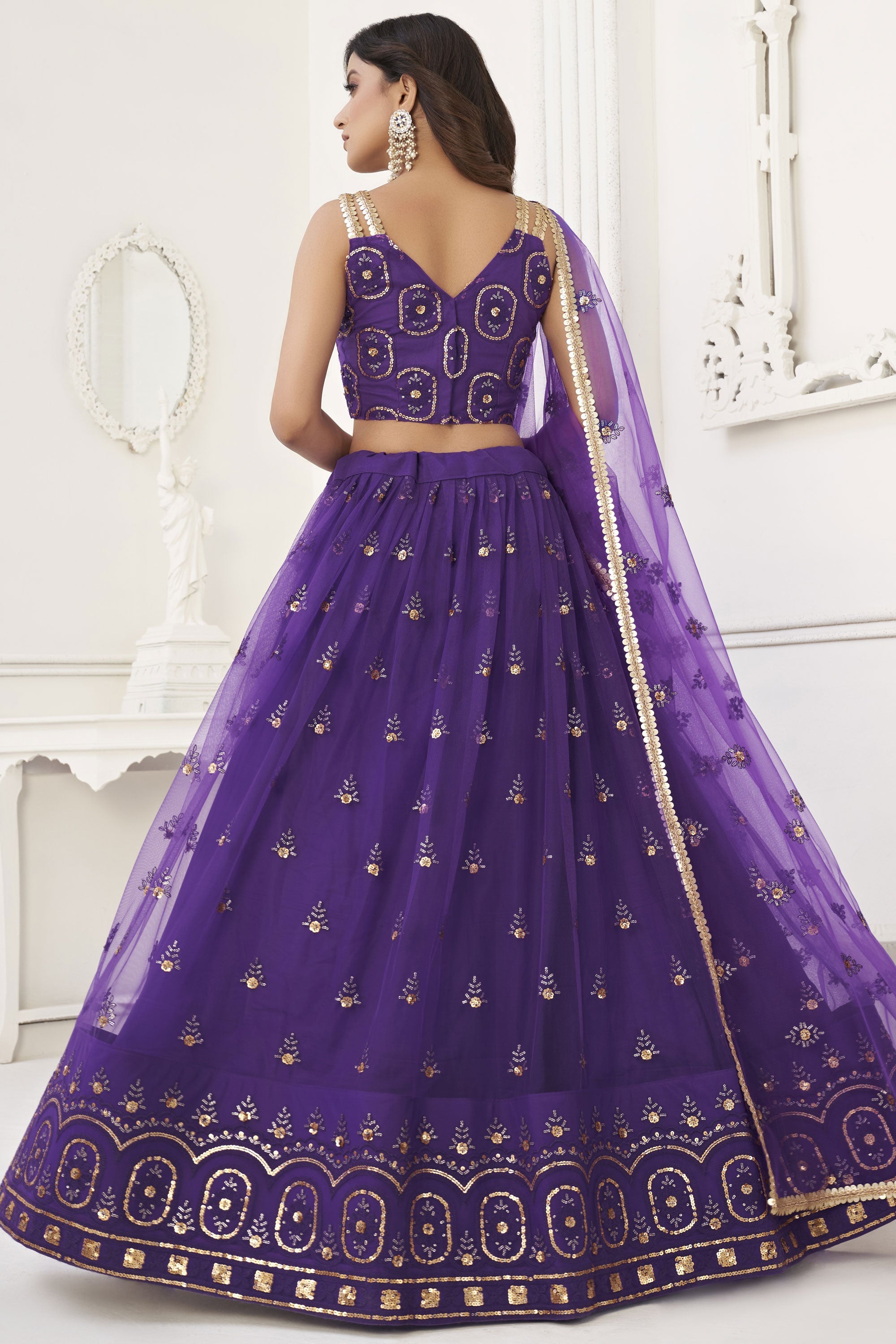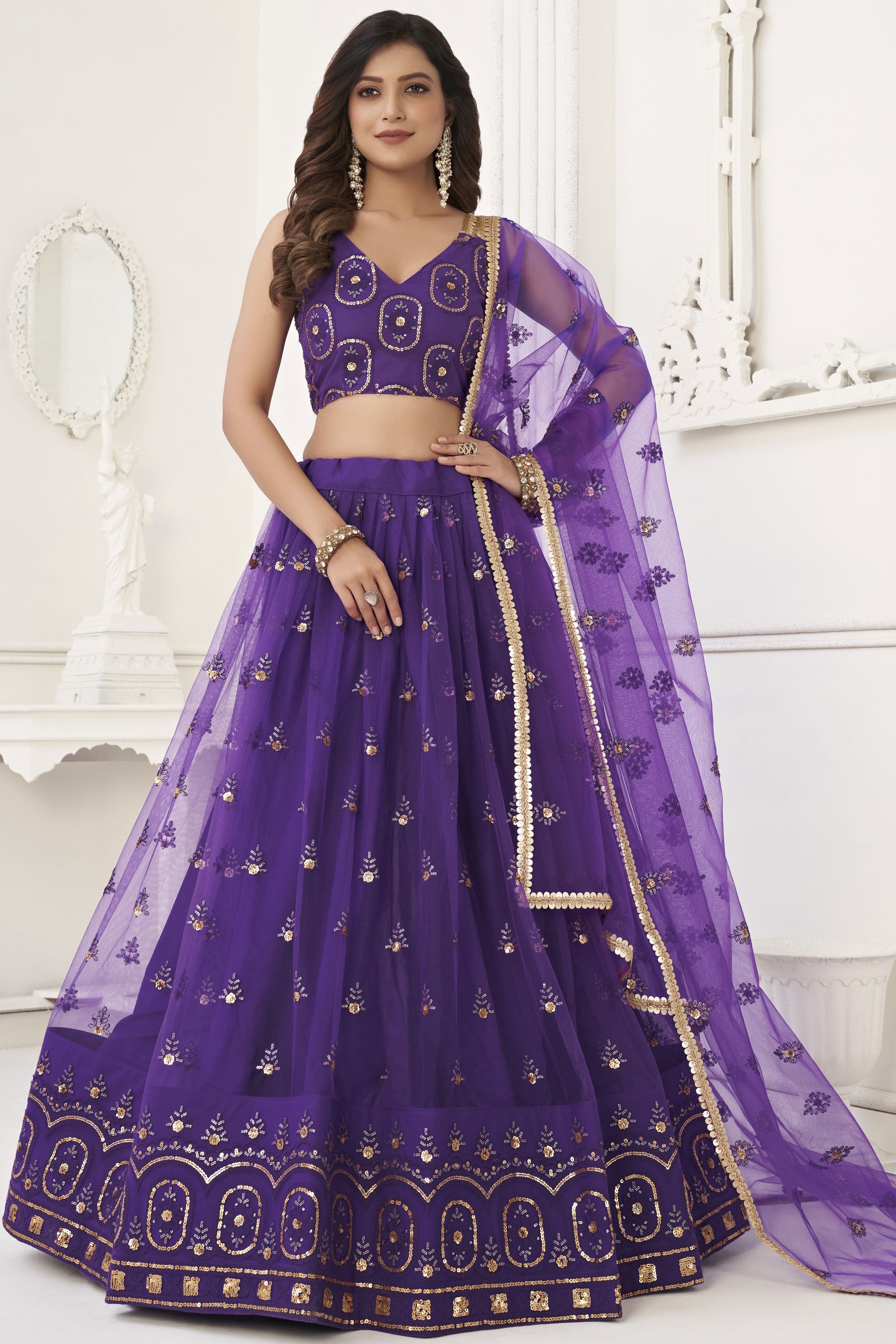 Purple Color Net Fabric Sequins Embroidered Work Lehenga For Sangeet Function