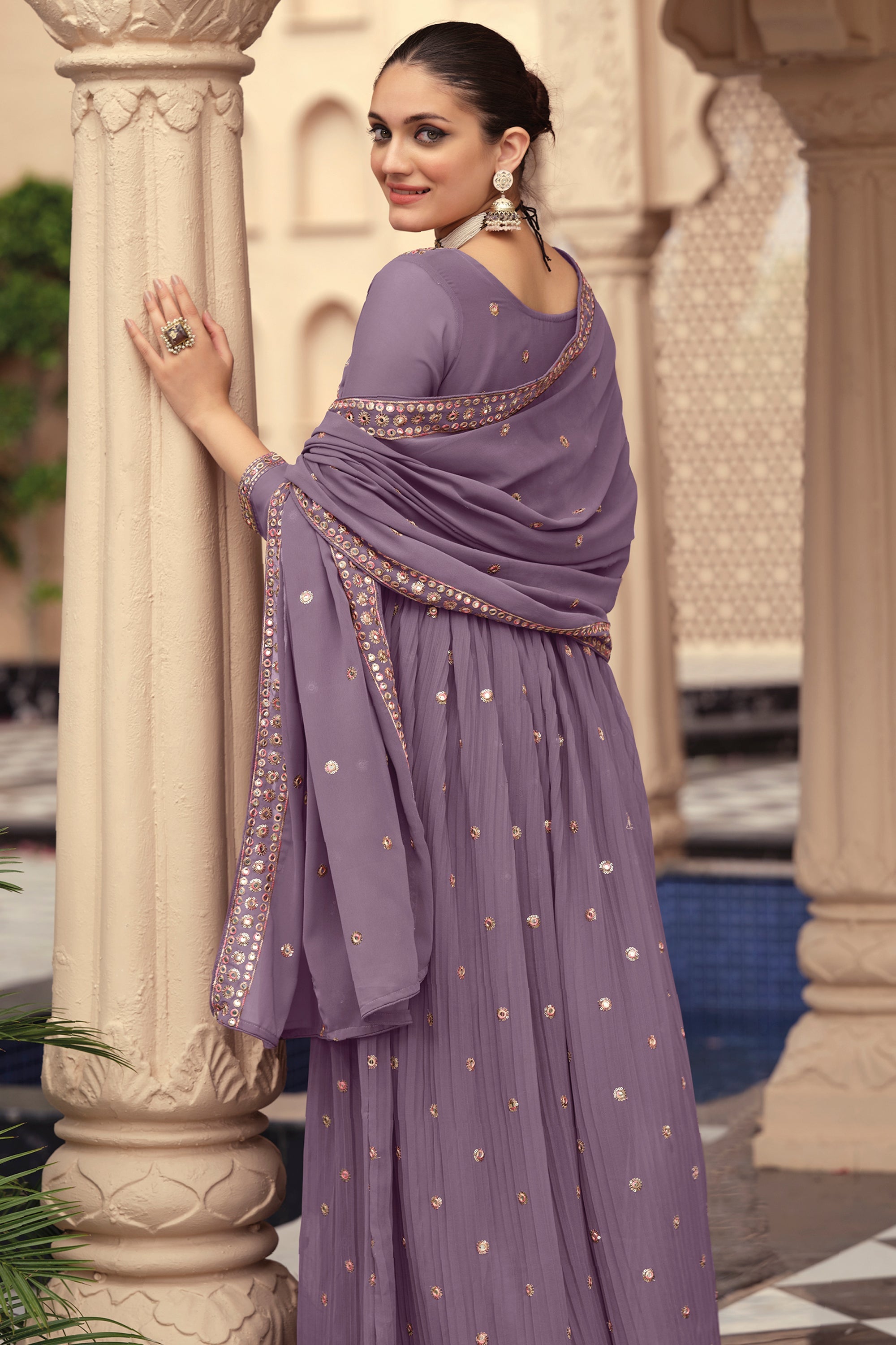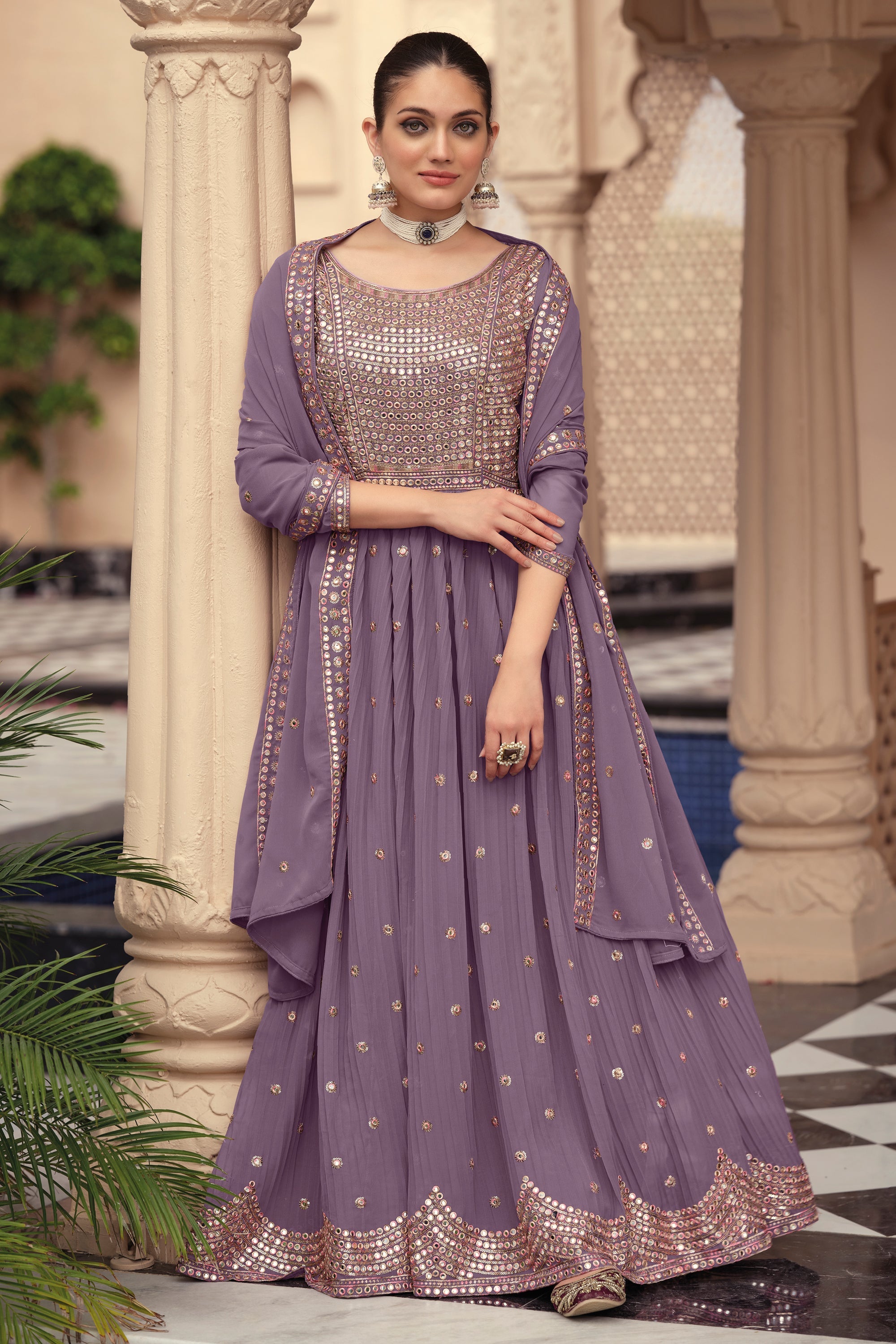 Purple Color Party Wear Embroidered Readymade Anarkali Salwar Suit In Georgette Fabric
