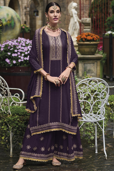 Purple Color Party Wear Embroidered Readymade Palazzo Salwar Suit In Chinon Fabric