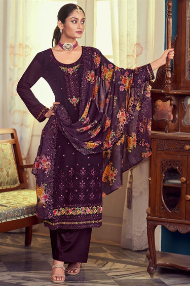 Purple Georgette Embroidered Salwar Suit For Functions and Celebrations