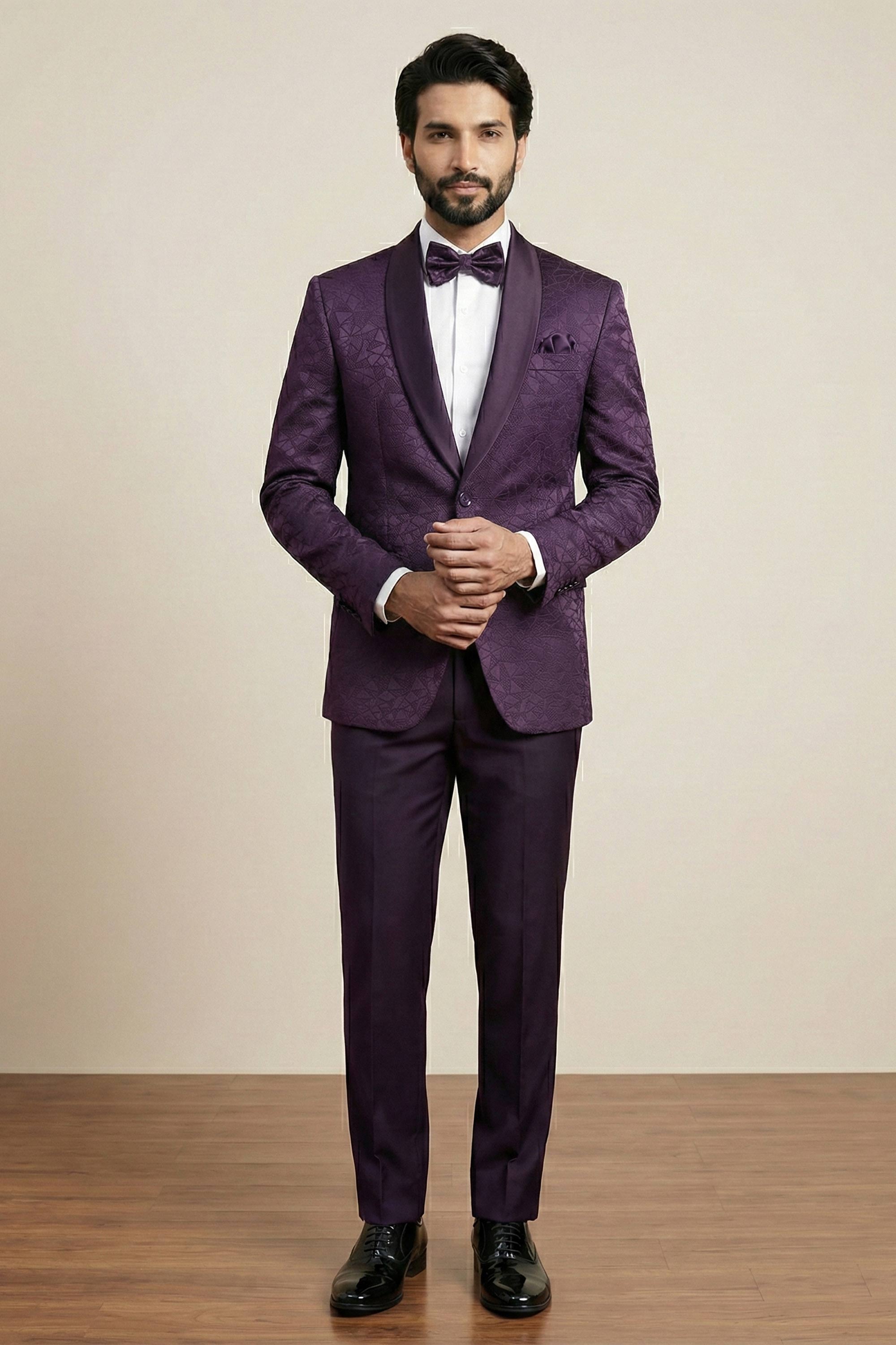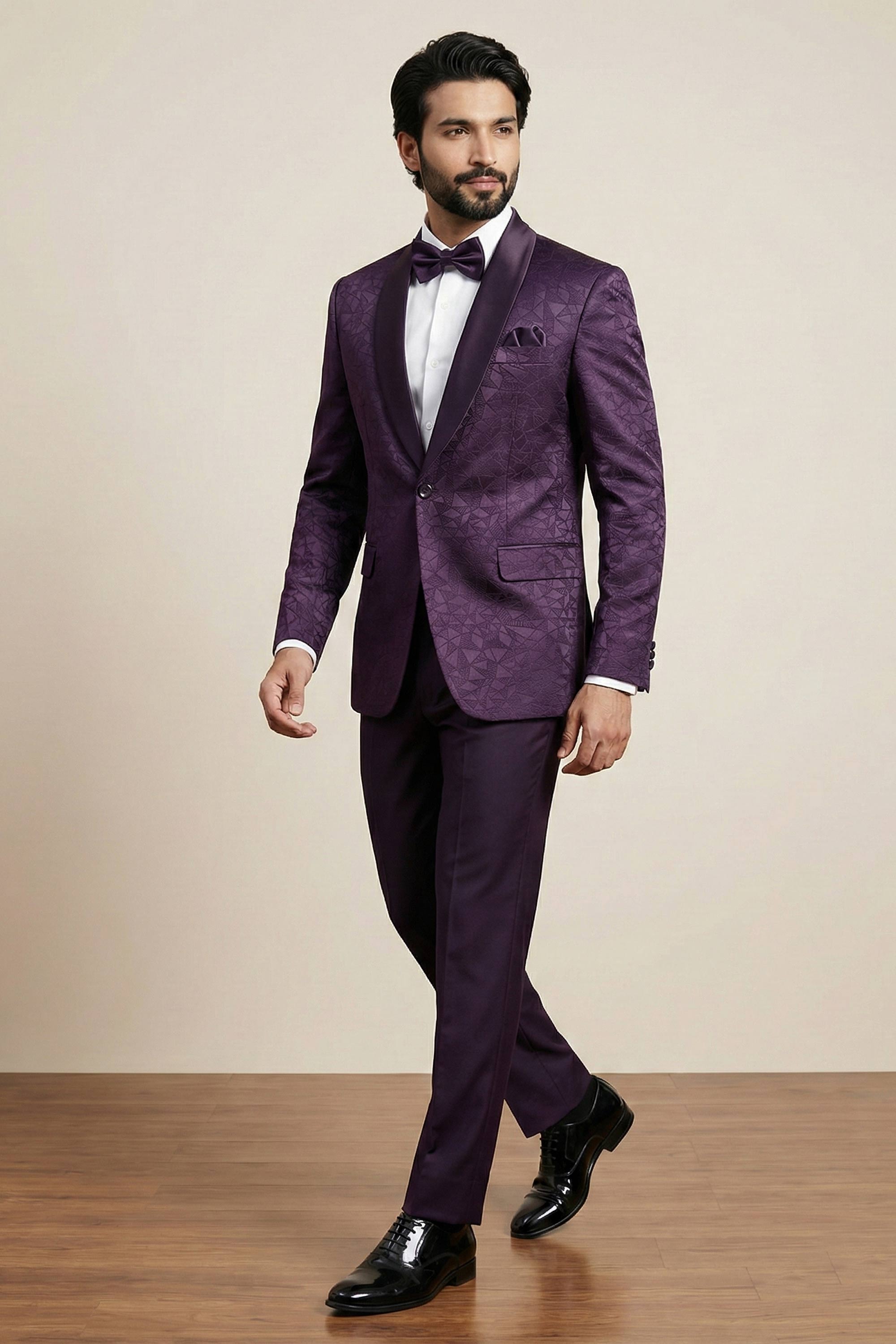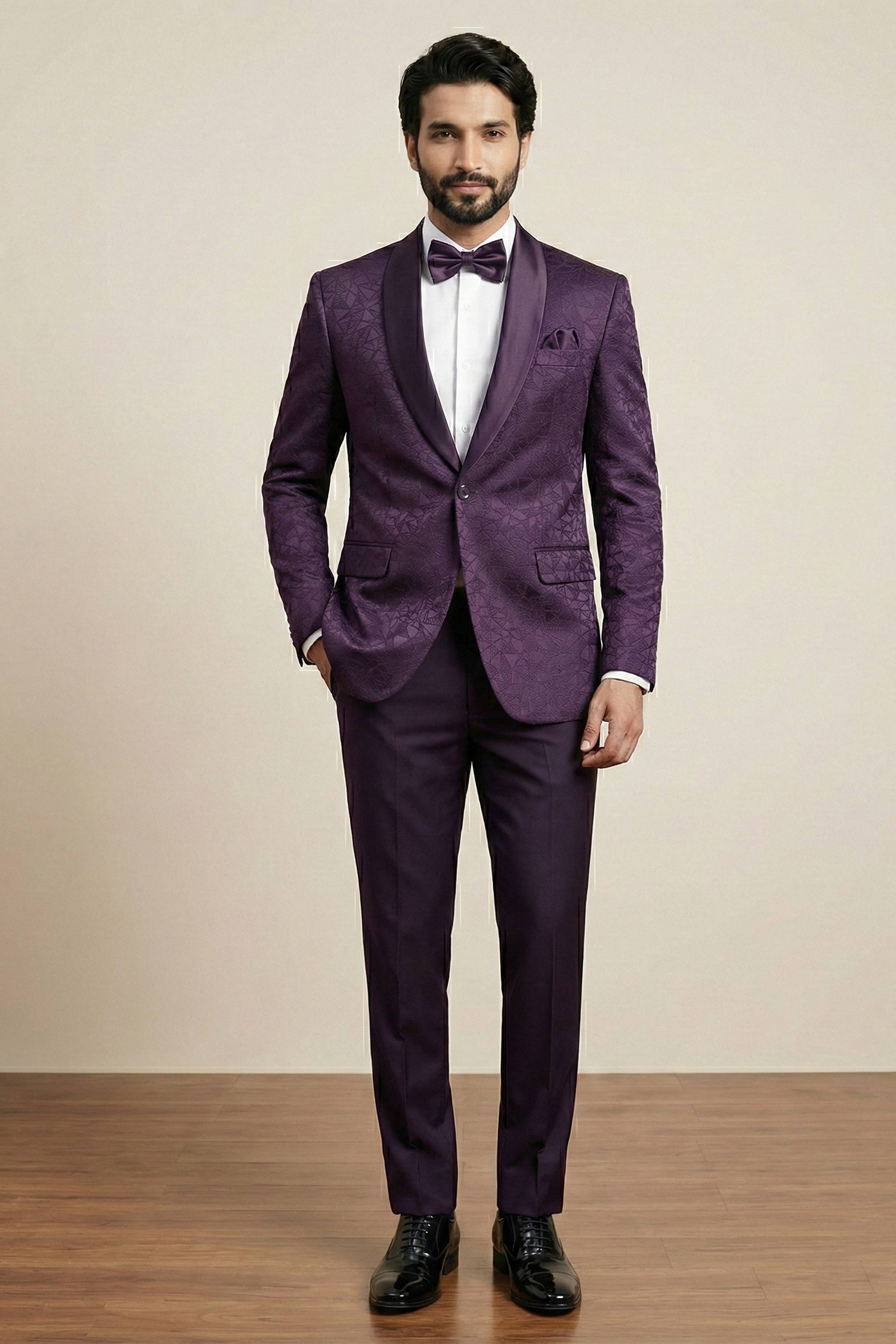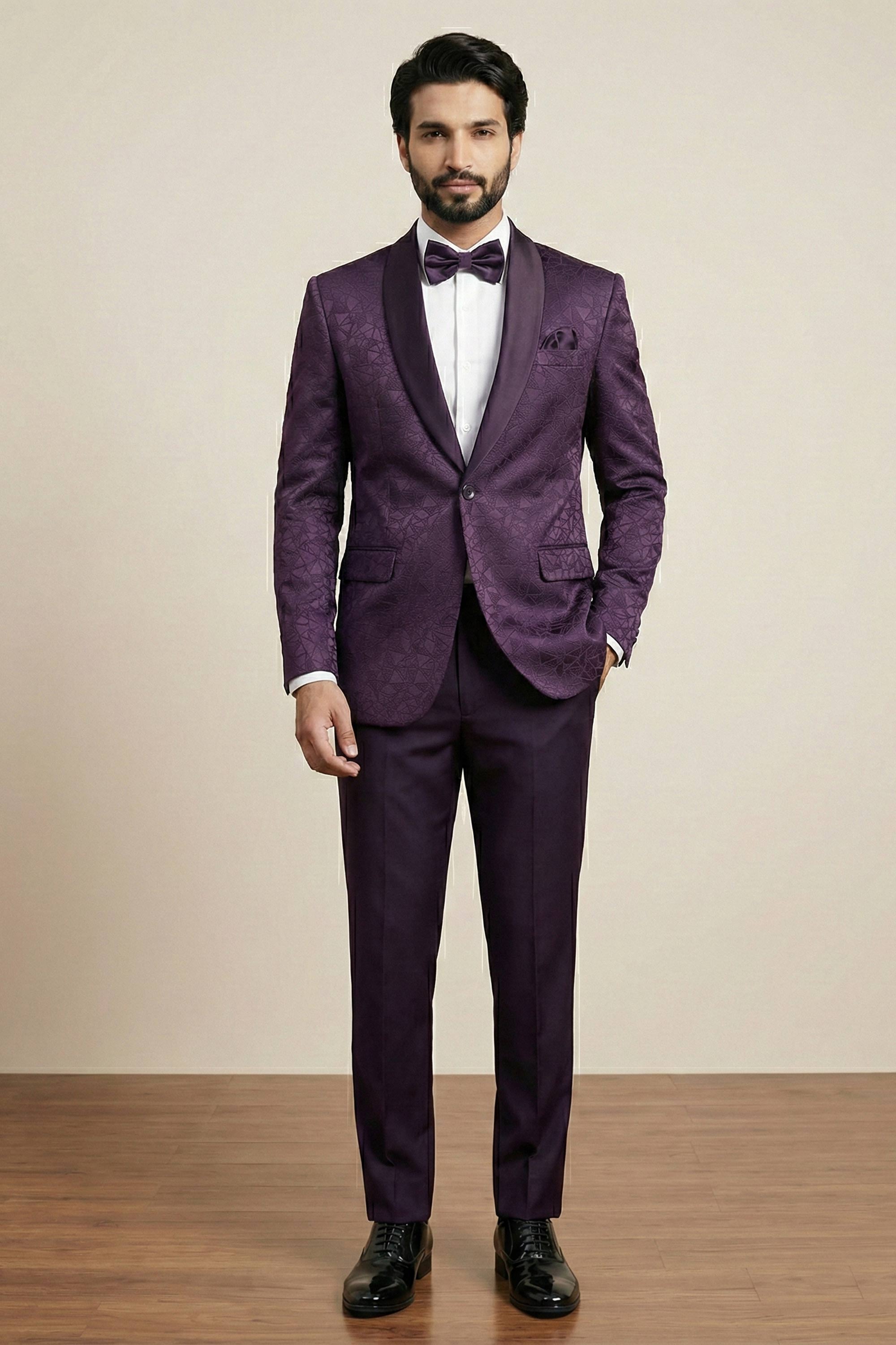 Purple Party Wear Jacquard Fabric Readymade Designer Blazer For Men
