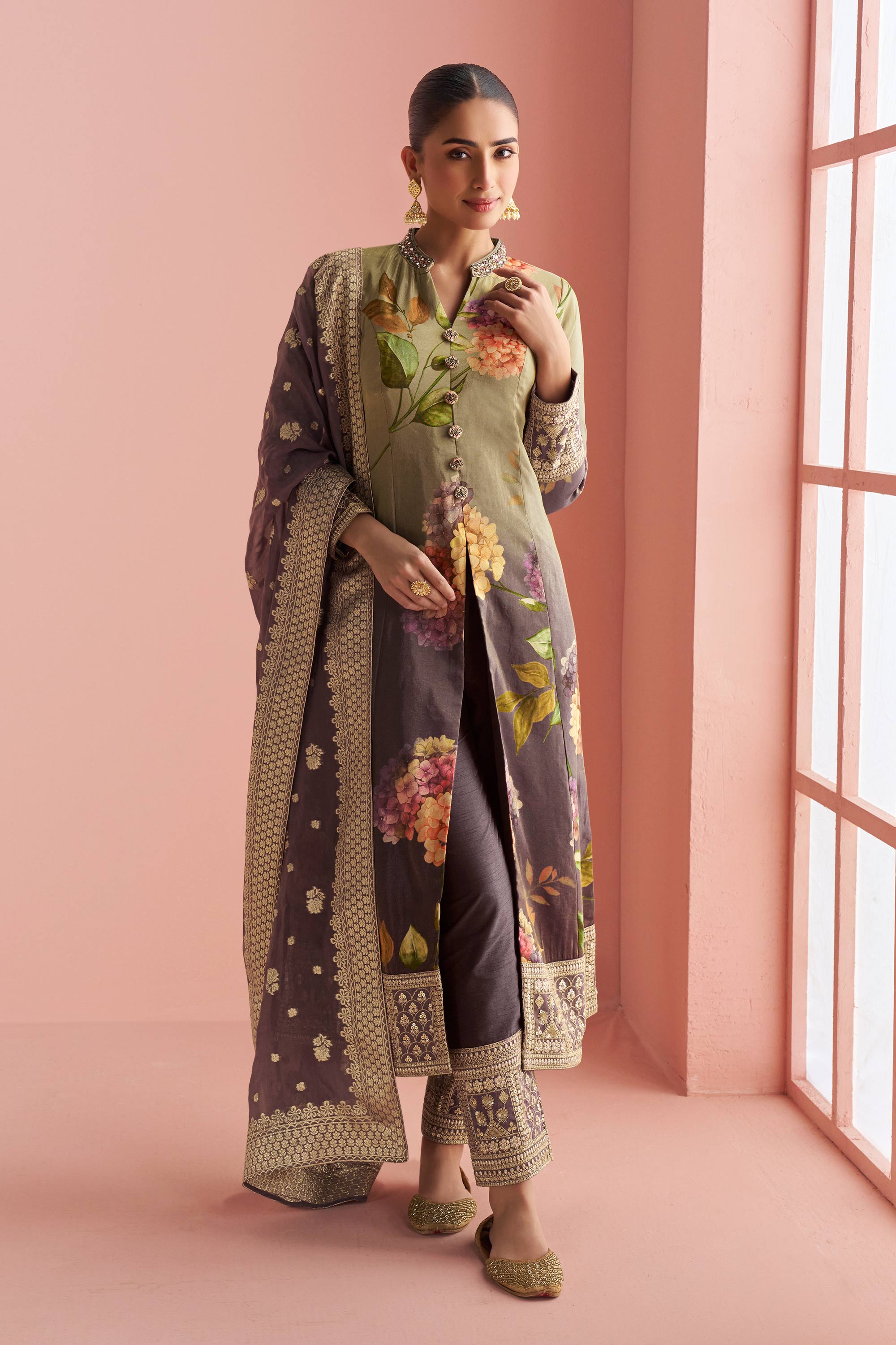 Step into sophistication with this premium Designer Salwar Kameez, crafted as a graceful readymade outfit for modern celebrations. The embroidered front cut top adds a stylish edge while maintaining a traditional ethnic appeal. Due to digital photography, slight color variations may occur.