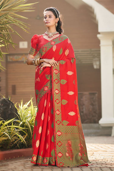 The beautiful Jacquard work on this saree adds an elegant touch, making it an ideal choice for special occasions and celebrations. The intricate patterns and designs created through Jacquard work elevate the overall look of the saree, giving it a regal and sophisticated appeal.