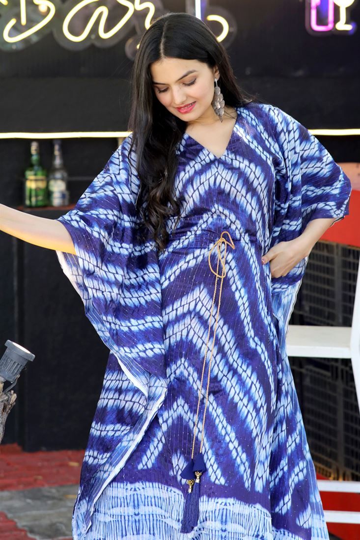Radiant Multi Color Digital Printed Chinon Fabric Kaftan