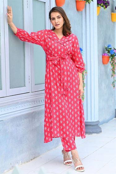 Radiant Pink Color Printed Fancy Fabric Kurti With Bottom