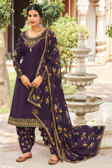 Radiant Purple Color Crepe Fabric Festival Style Patiala Suit