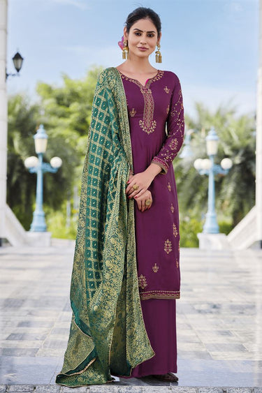 Radiant Purple Color Satin Georgette Fabric Palazzo Suit