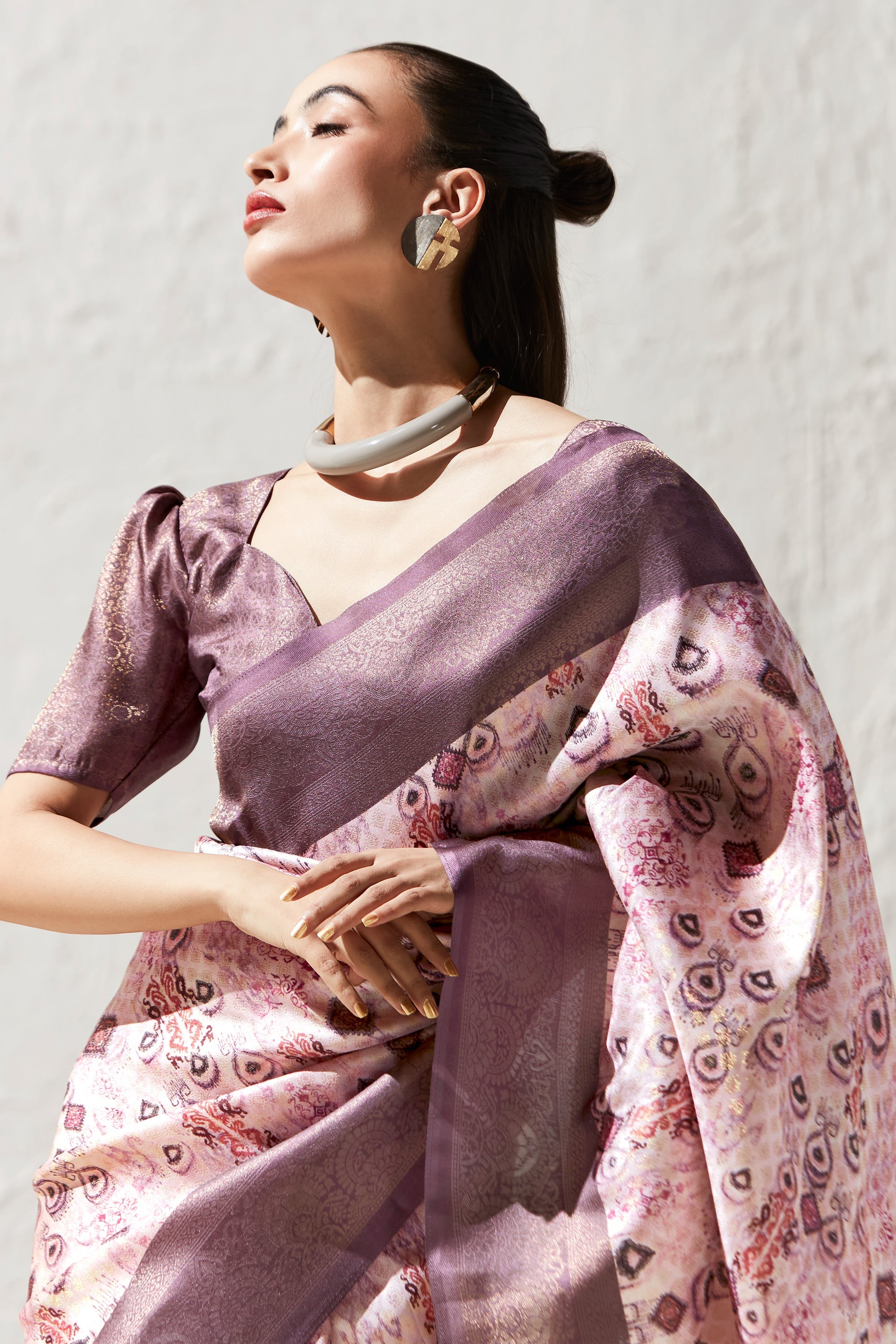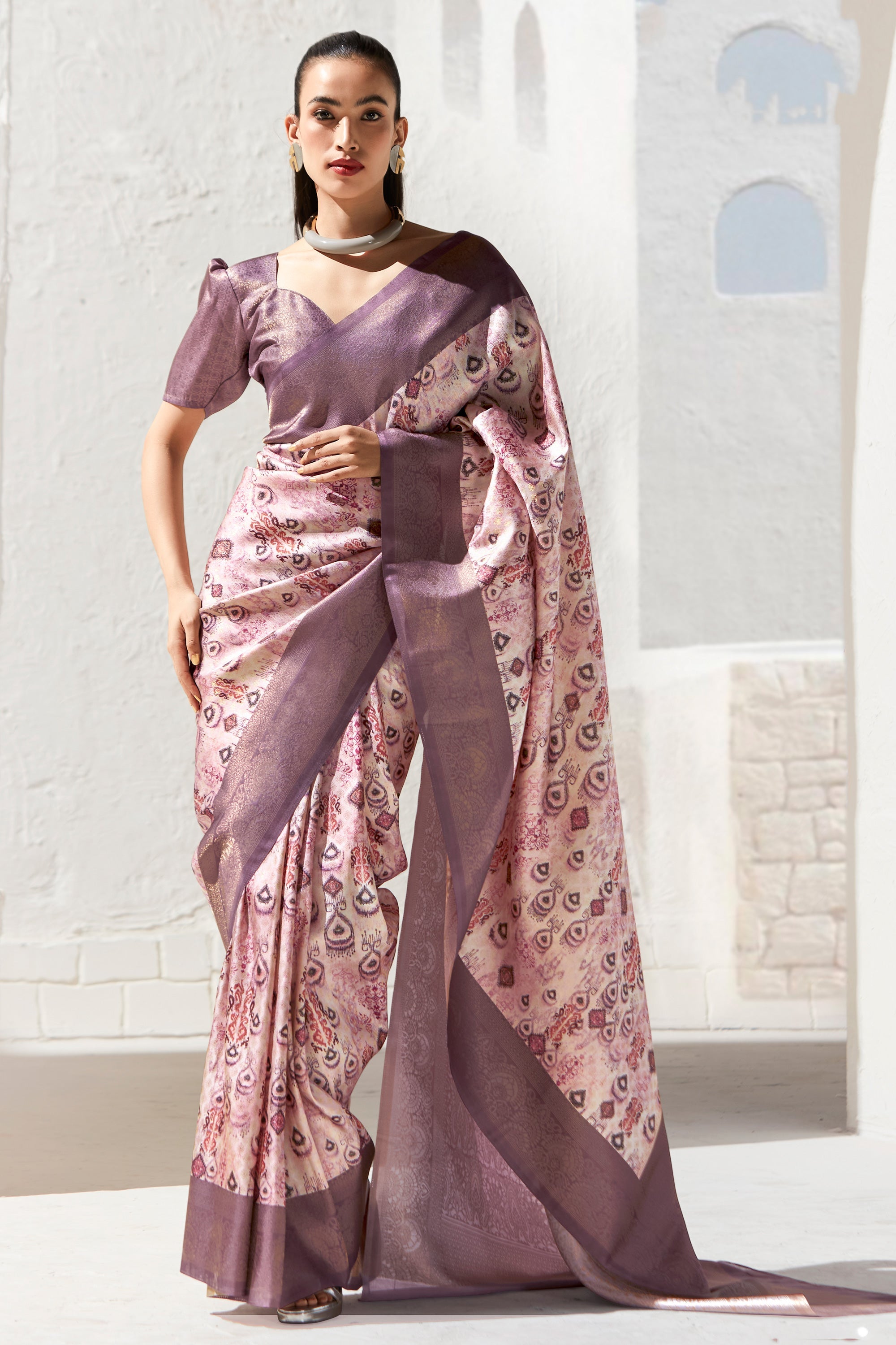 Radiant Purple Digital Printed With Zari Border Art Silk Classic Saree