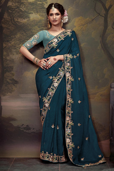 Reach Color Silk Fabric Embroidered Border Work Festive Wear Saree is designed for the modern woman with traditional tastes. The rich silk fabric offers a luxurious feel, and the intricate embroidered border enhances the elegance. The saree comes with an unstitched silk blouse that perfectly matches the ensemble. Whether you're attending a festive occasion or a grand celebration, this saree is sure to make you stand out. Note that there might be a slight color variation due to digital photography. Experience the timeless charm and elegance of silk with this beautiful saree.